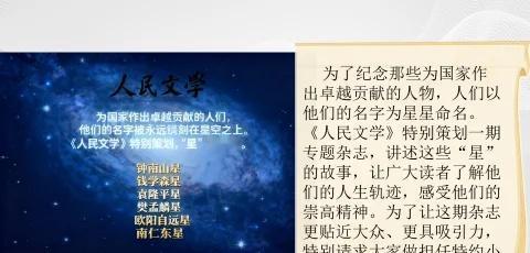 《天上有颗南仁东星》这样上超有意思的吧 主题: 为国家作出卓越贡献的人们,他们的名字被永远镌刻在星空之上。《人民文学》特别策划,带你走进这些“星”的故事。 一、人物特稿:星途回望——南仁东的逐梦轨迹梳理人生轨迹 二、事件评选:星光时刻——南仁东的关键时刻 三、人物插图:星光为幕——凝望与追寻的身影 三、推荐星星:以星为名,致敬人间的光 1、本特刊主题为夜空中最亮的星,难道只是有南仁东星的存在吗?文中多次提到星星,请找出来说一说南仁东和星的关系。 2、本特刊每篇稿件前都会设置推荐星星的部分。请结合本课所学,为南仁东星这篇稿写一段推荐语,吸引更多读者前来阅读。 天上有颗南仁东星 初中语文备课