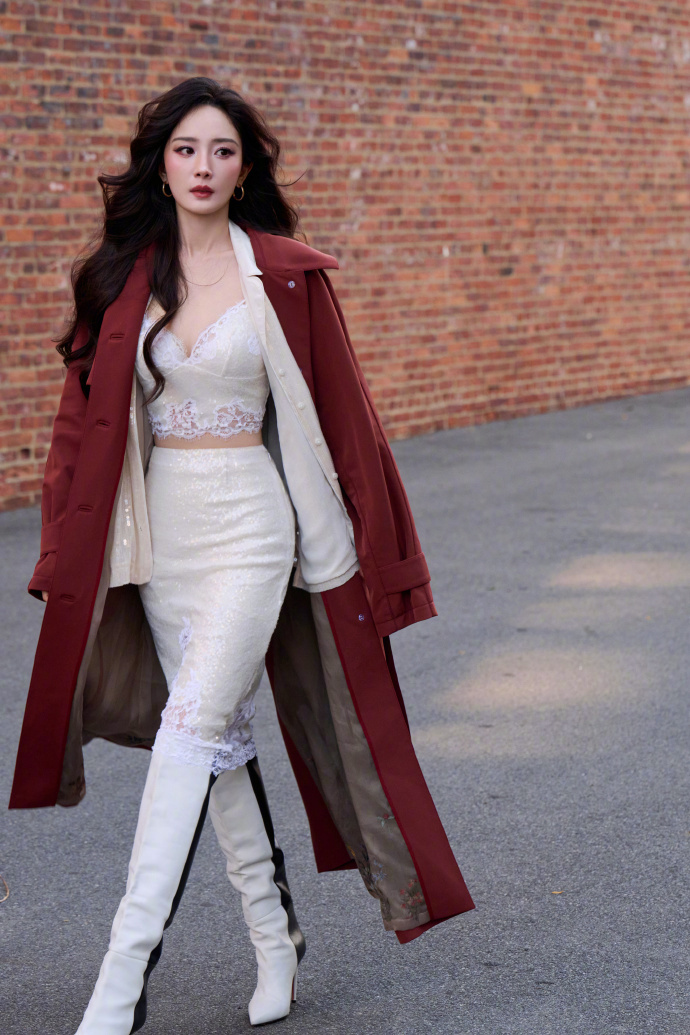 杨幂维密这组街拍照好飒啊,红衣长靴真的女王级别。。