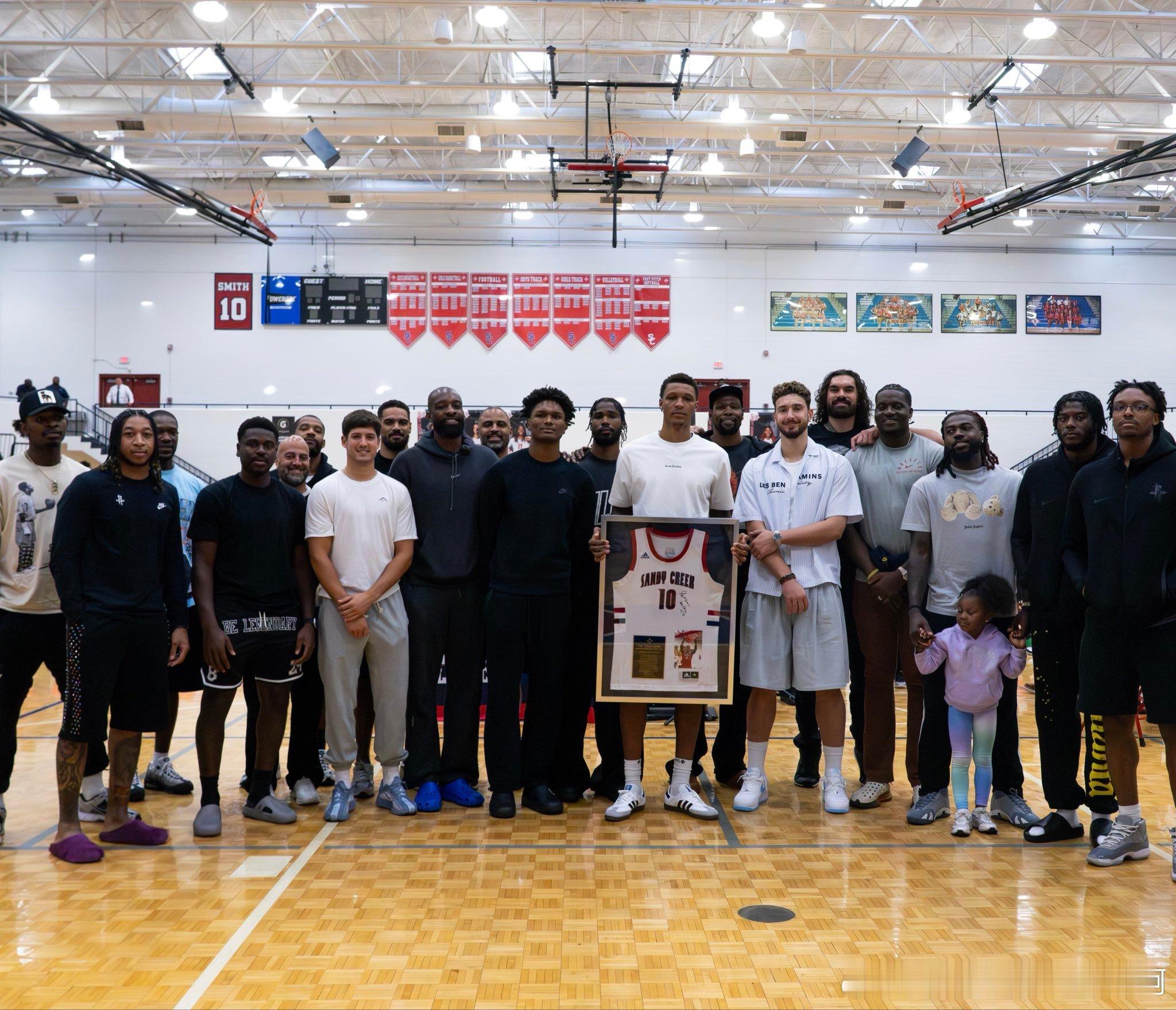 小贾巴里·史密斯高中球衣退役仪式开启,火箭队现役球员合影