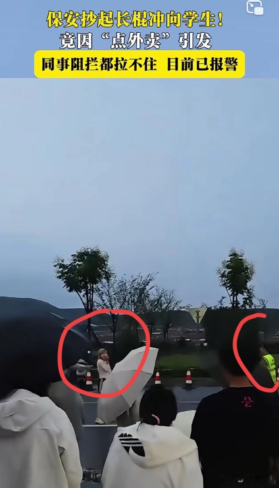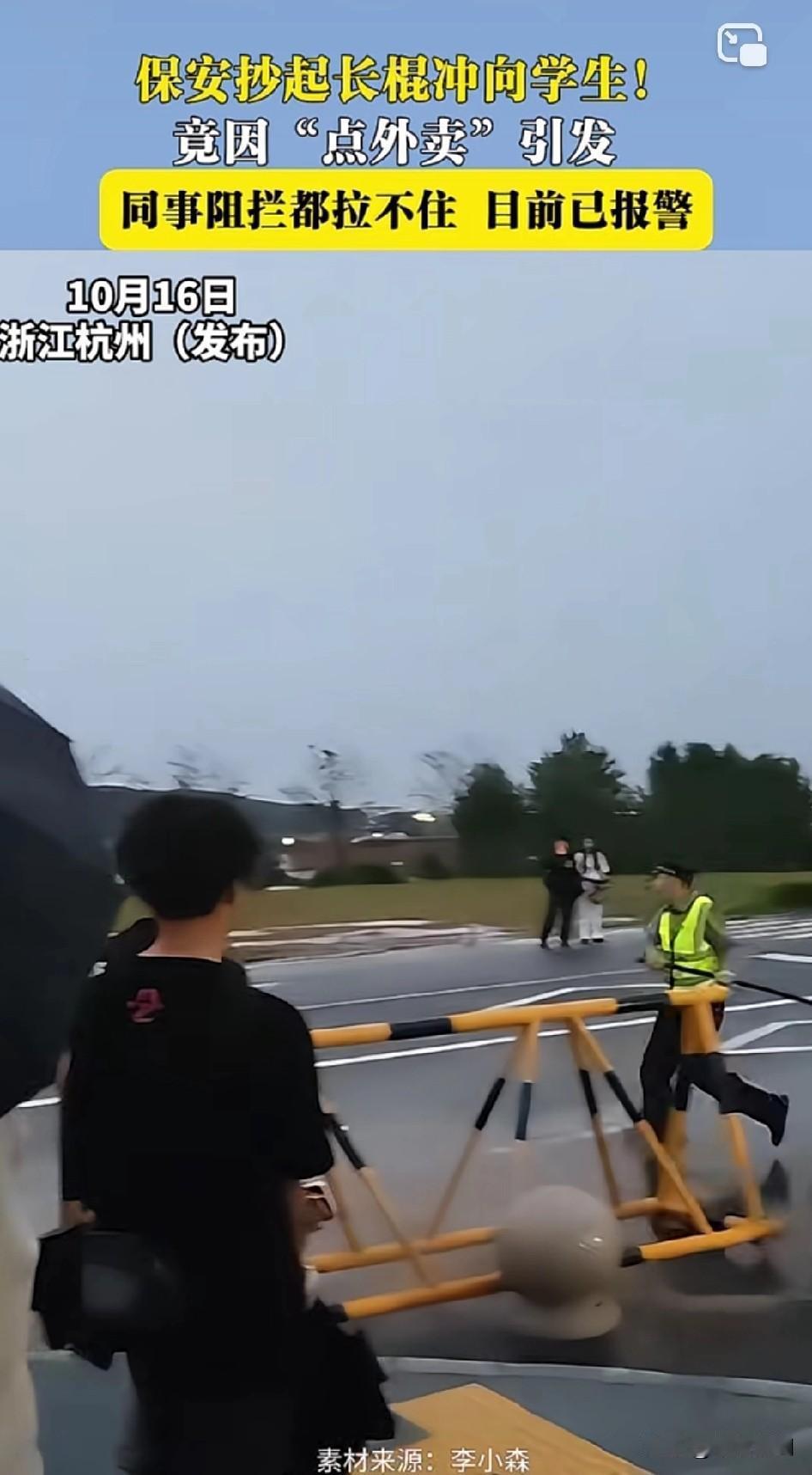 如果打到了,可不可以无限反击 保安抄起长棍冲向学生! 竟因“点外卖”引发 同事阻拦都拉不住 目前已报警 ! 持械追逐,殴打,不顾他人劝阻,主观恶意明显,符合寻衅滋事的构成要件,应该可以达到刑事拘留的标准了!