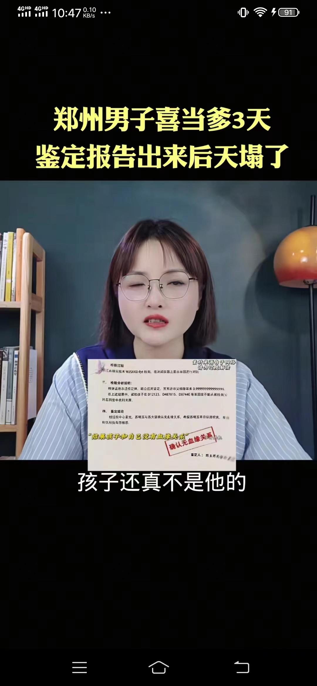 娃他爹是谁不知道 河南郑州一男子,因一直怀疑妻子的作风问题,待妻子生完孩子的第三天,就急着去做亲子鉴定。 果然不出男子所料,孩子还真不是他的,他质问妻子为什么要这样对待我?妻子说:你的别人的有什么区别?不就是个孩子吗?有什么区别? 法院最后判决,女子赔偿男人6万元,孩子由女方抚荞,房子及财产归男方所有,女方净身出户。 一个靠丈夫养活的女人,还不安分守己好好操持家务,她就非要整天在网上和这个聊,和那个谈,最终连孩子他爹是谁,她都不知道,现在没有经济来源,没有房子住,身边还带着一个拖油瓶,每月没有三四千块钱,怎么养活这对母子,谁又愿意来接这个盘?难了!