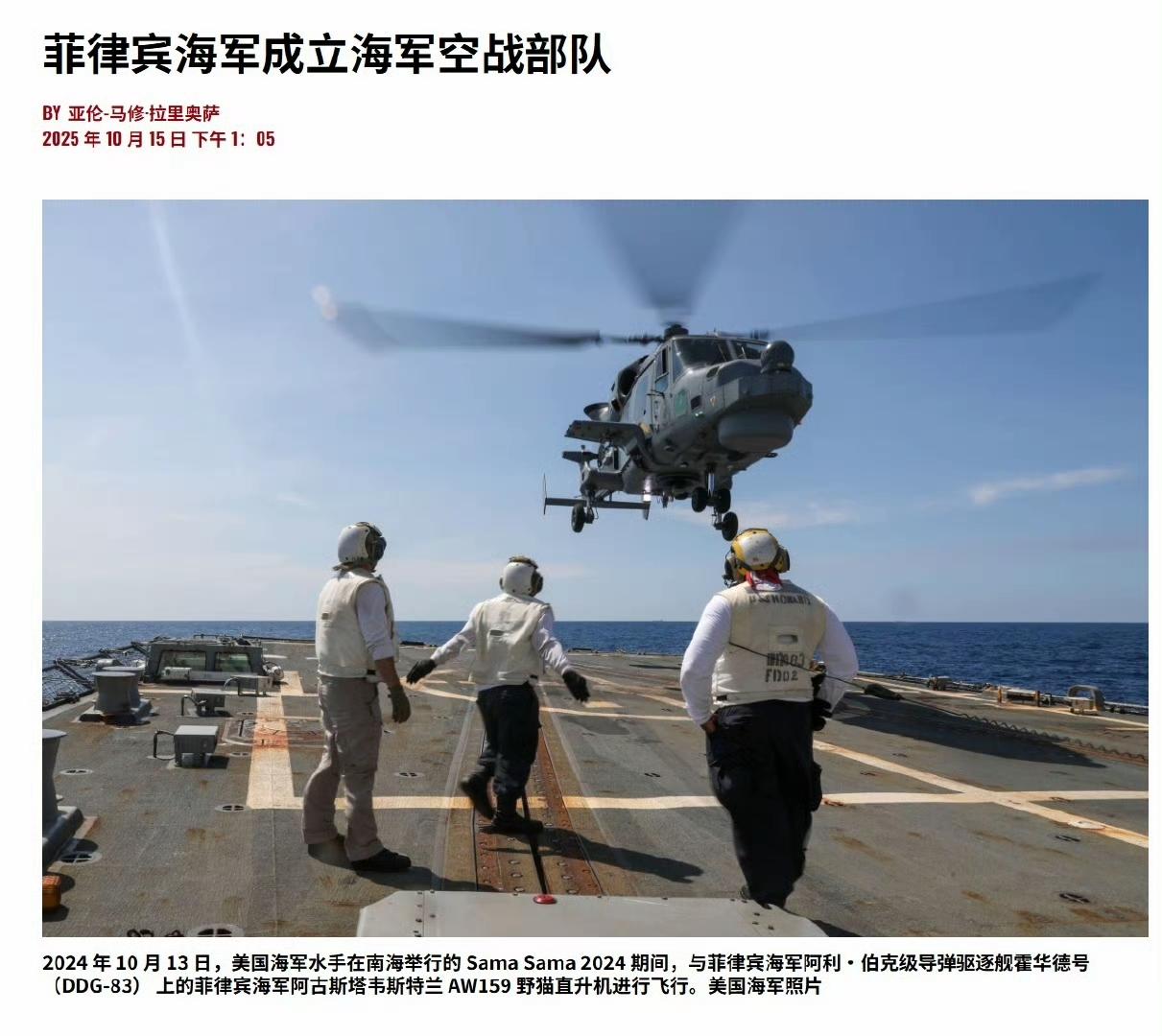 USNI报道,10月6号,菲律宾将其海军航空兵部队重组为海军空战部队。 目前菲