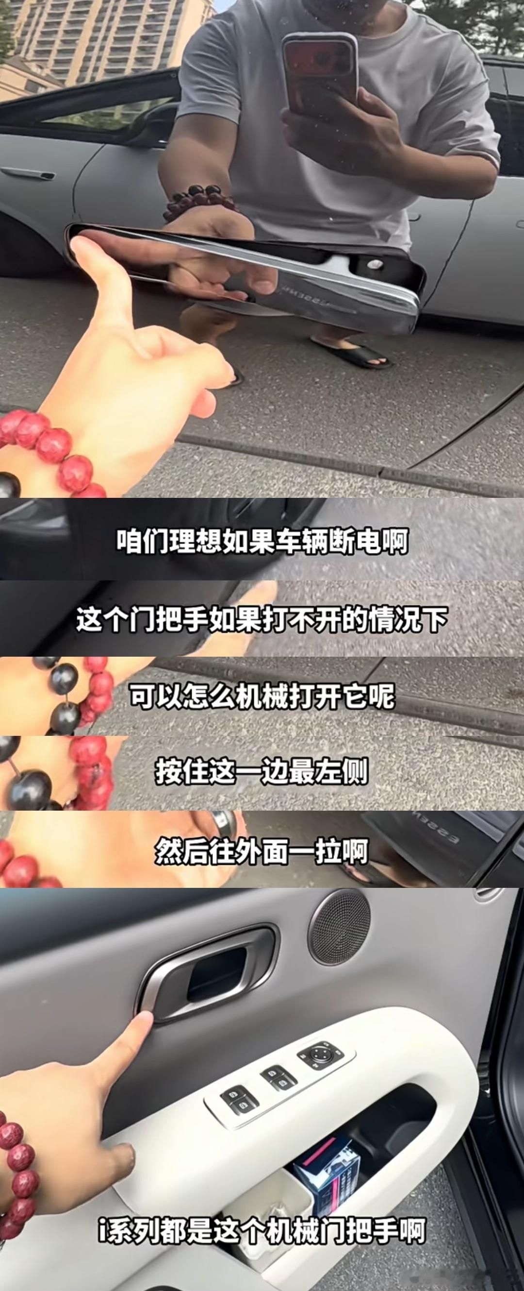 另外,理想昨天也分享了,断电后隐藏门把手的打开方式。
