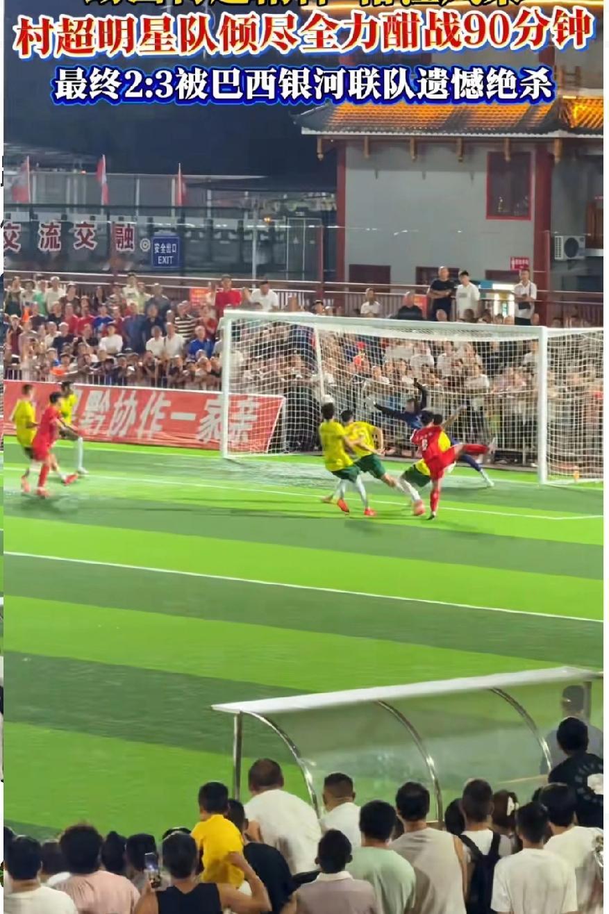 巴西队教练大声提醒队员:“他们不是国足,都给我打起精神来!”中国村超——榕江明星队与巴西银河联队酣战90分钟,虽然2:3惜败,但是踢出了村超精神,踢出了榕江风采!让国人看到了中国足协的希望! 巴西银河联队队长称赞道:他们(榕江明星队)今晚打得非常好!这是一场非常激烈的比赛!我们今天在这里遇到的对手比我们之前遇到的对手都强! 有人建议,村超联队应该和国足比一场,让国人看看真正的中国足球什么样子!也决定中国足协是该留还是该解散?