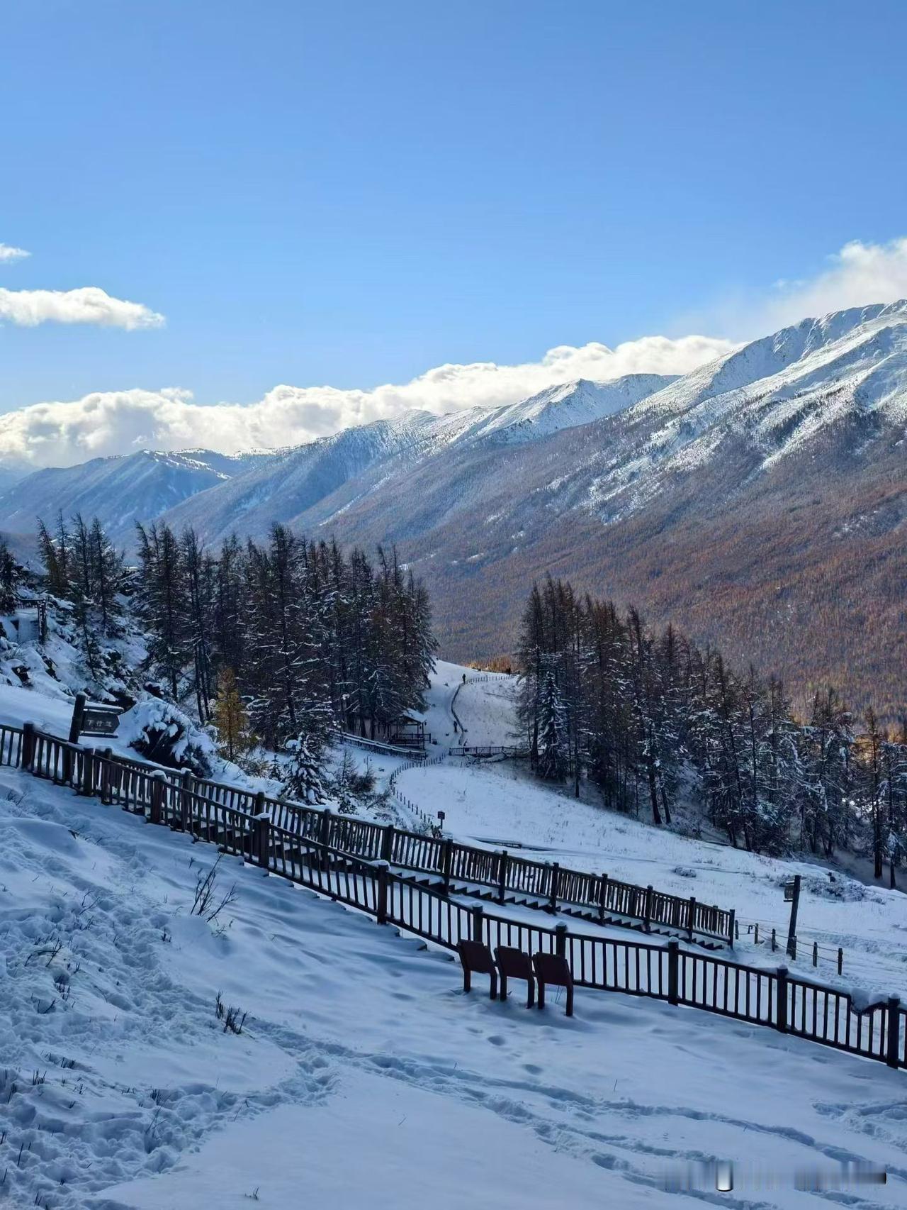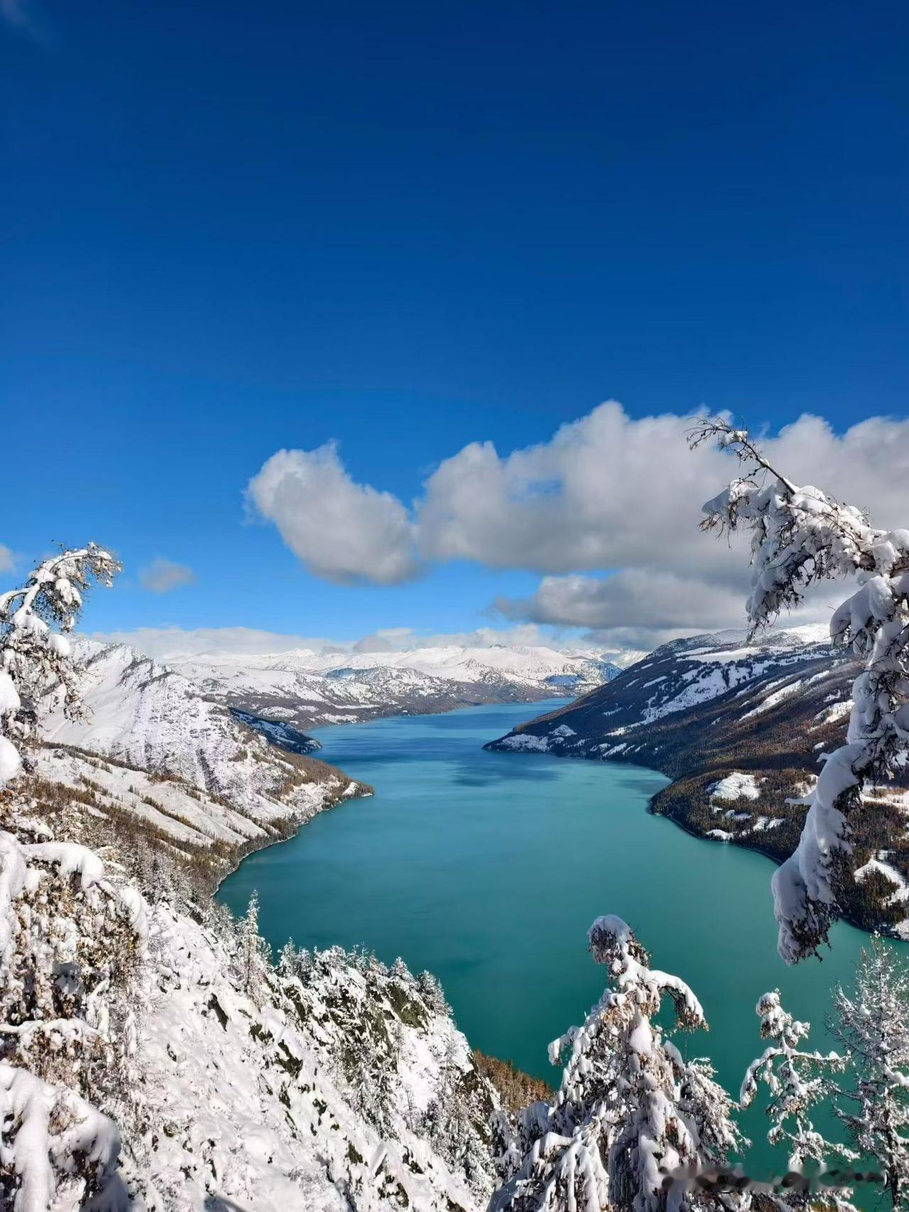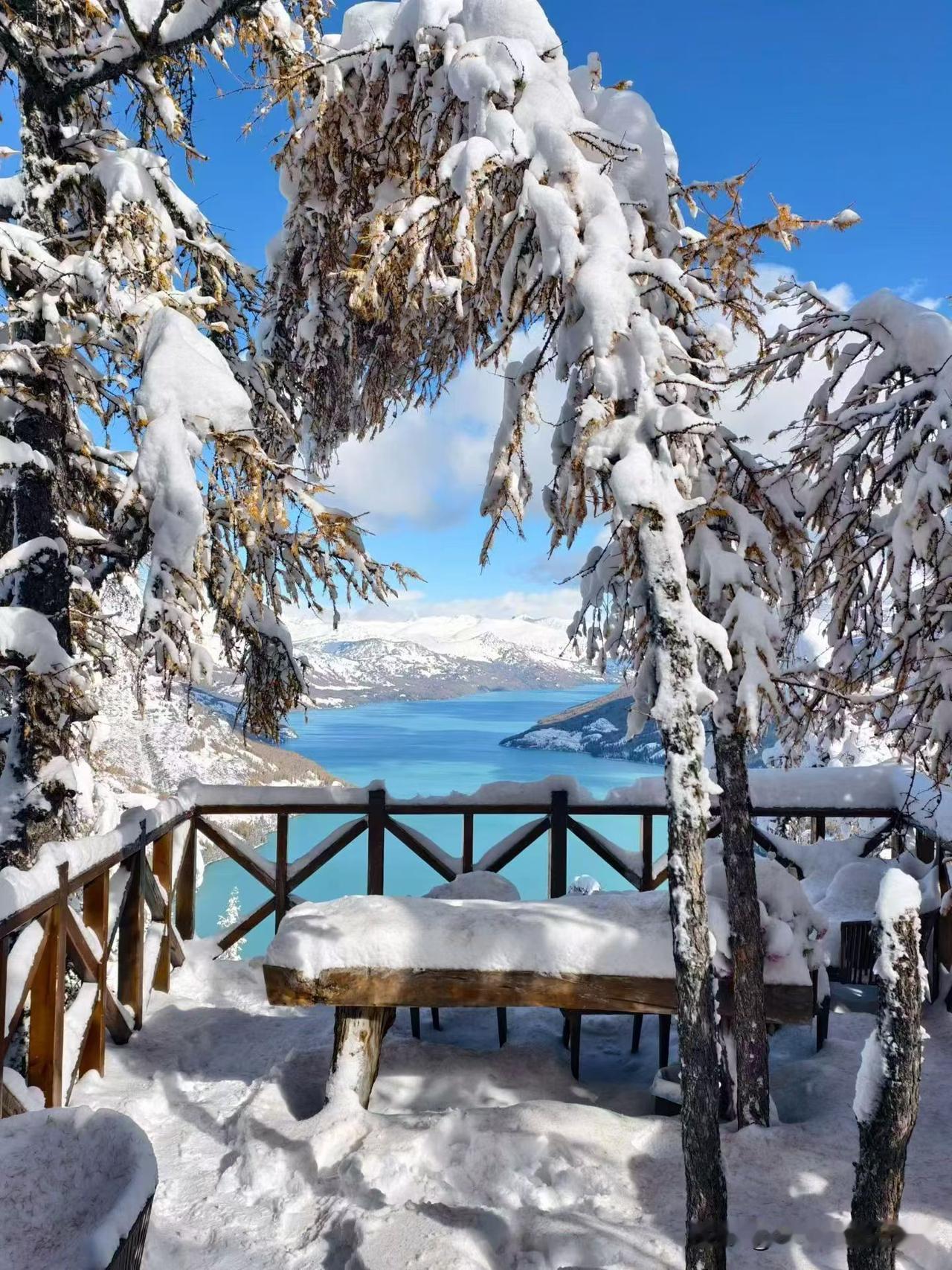 新疆北疆阿勒泰地区布尔津县现在就已经进入漫长的冬季了,此时此刻的喀纳斯观鱼台几天暴雪过后,终于看到明媚的阳光,喀纳斯湖水的颜色太绝了。