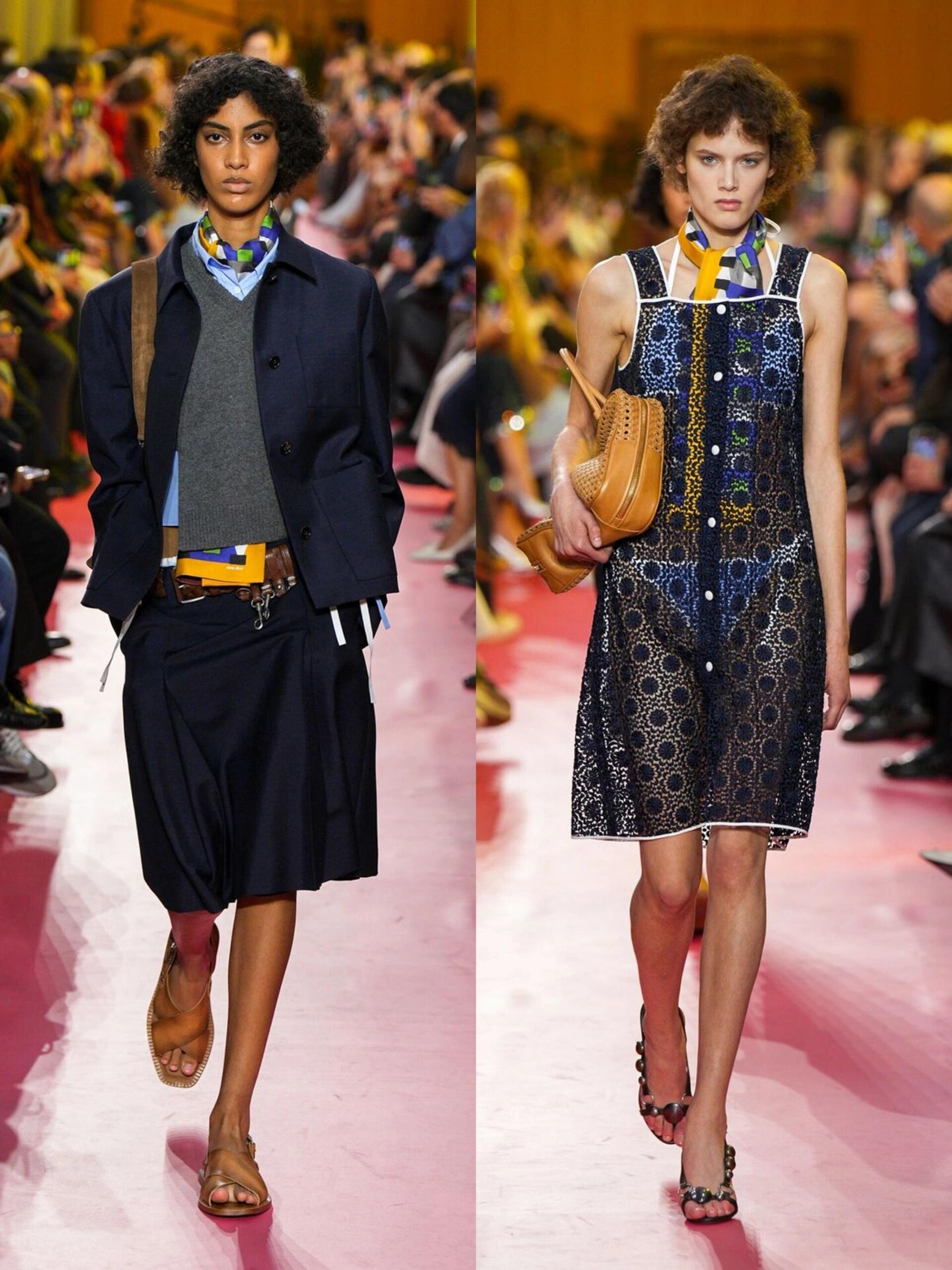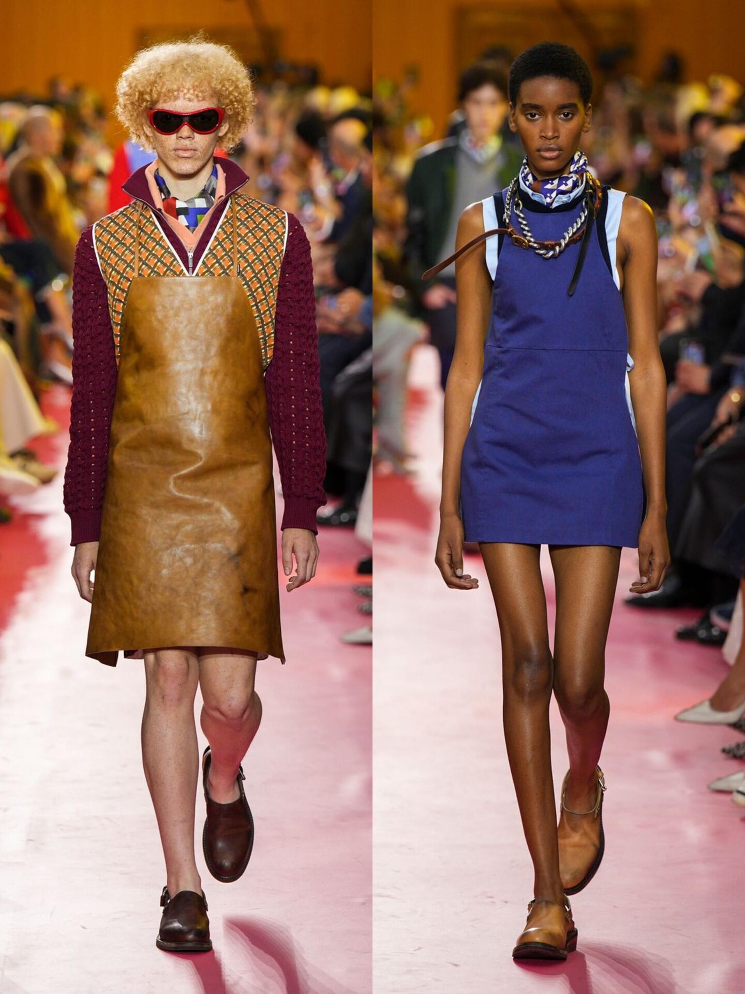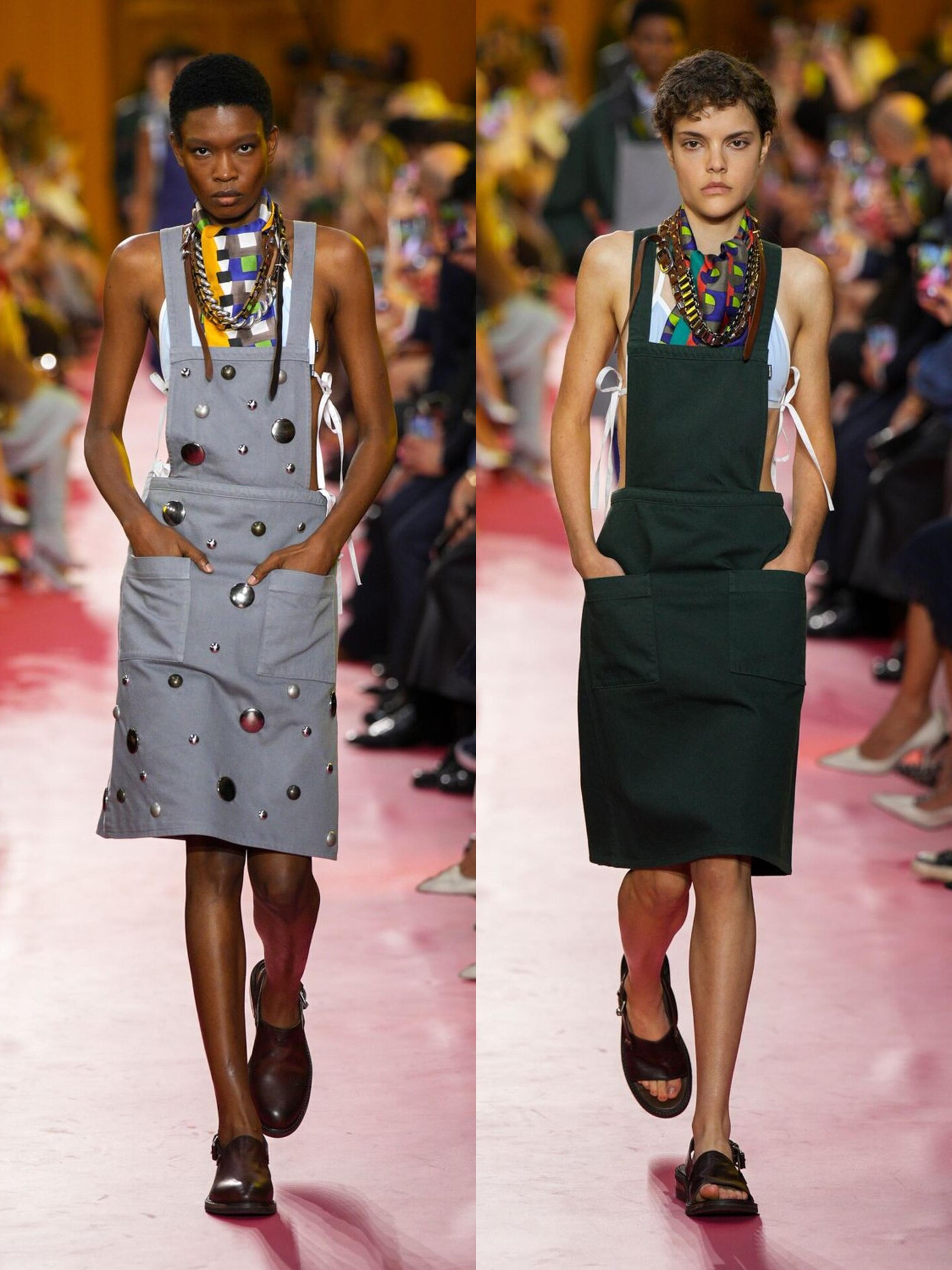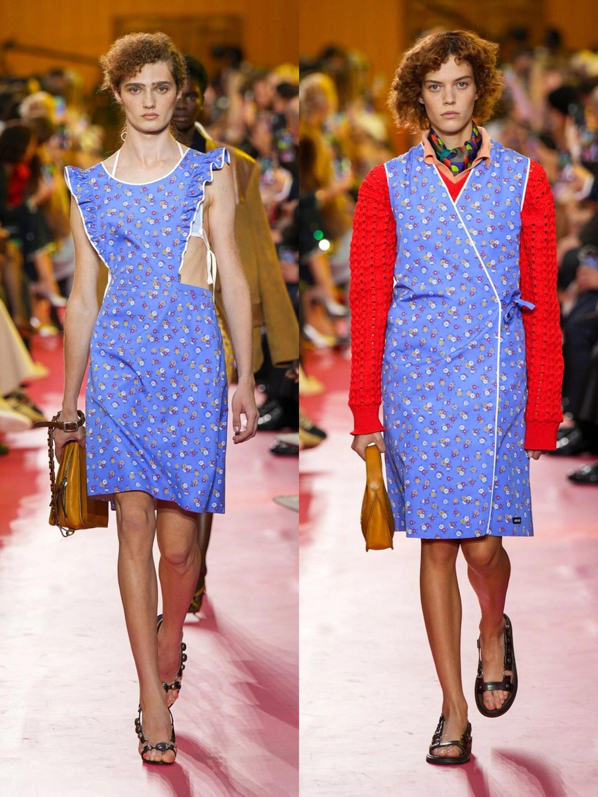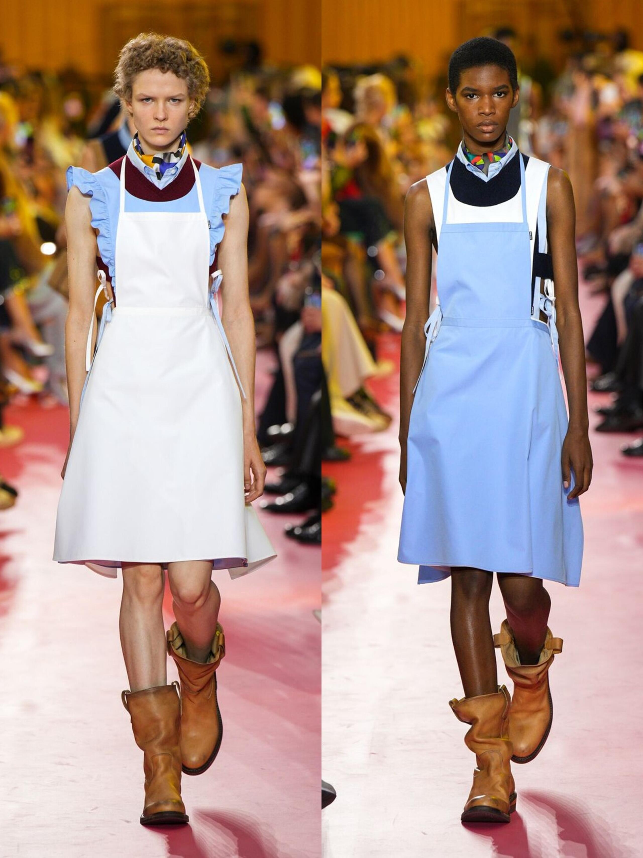 MiuMiu秀场叠搭公式 2026 春夏这场 “AT WORK” 主题秀,把叠搭玩出了哲学感!Miuccia Prada 用围裙当核心符号太绝 —— 工业斜纹布的硬朗围裙叠在蕾丝连衣裙外,廓形西装裹着荷叶边裙摆,刚柔撞出的不仅是视觉层次,更是对 “女性职业身份” 的解构。巴黎耶纳宫的蓝色工作台布景像个 “职场实验室”,每一层叠穿都在说:女性的形象从不是单一的,复杂才是真实的力量感~这种把服装变成 “社会叙事” 的叠搭,真的越品越有味道!