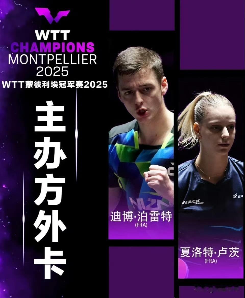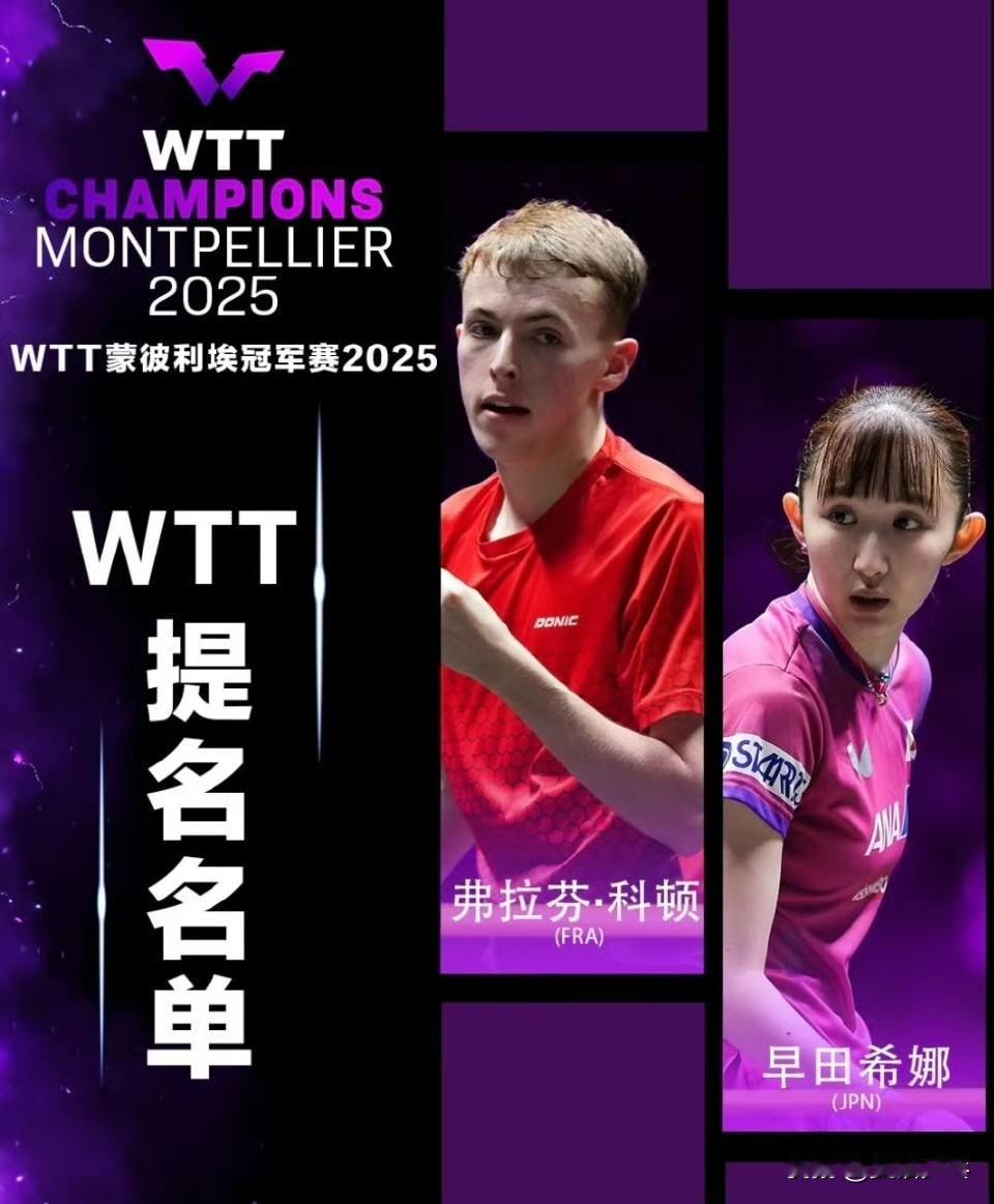 2025WTT蒙彼利埃冠军赛主办方外卡及提名名单公布:10.16 【主办方外卡】 男单:迪博·泊雷特🇫🇷 女单:夏洛特·卢茨🇫🇷 【WTT提名名单】 男单:弗拉芬·科顿🇫🇷 女单:早田希娜🇯🇵