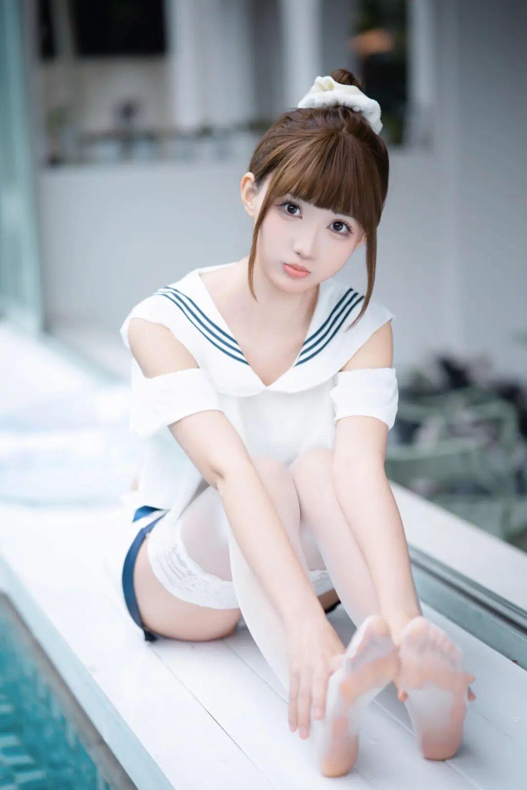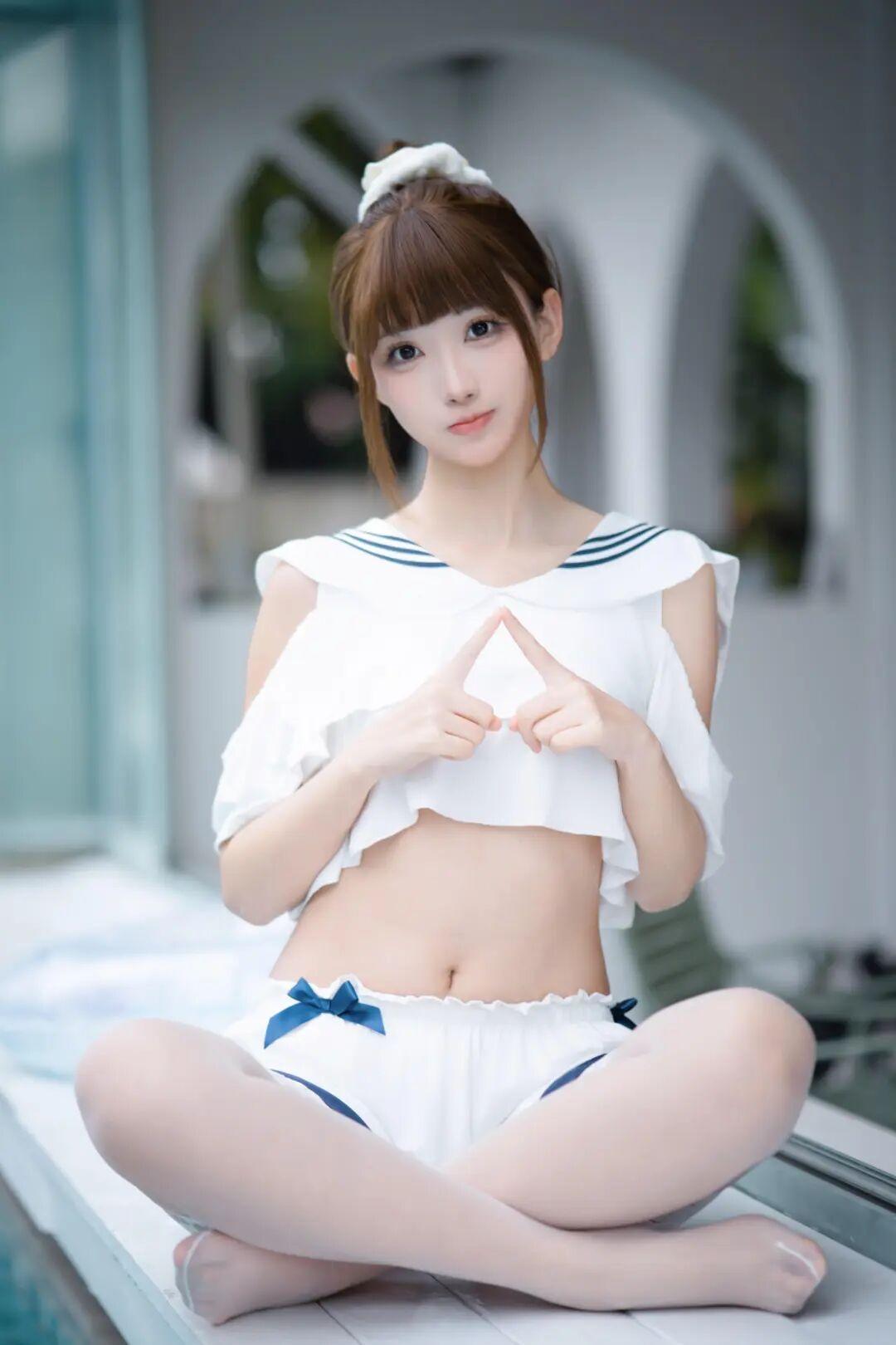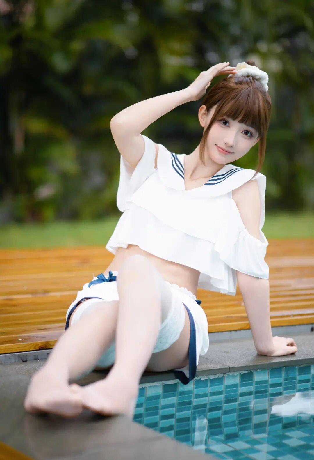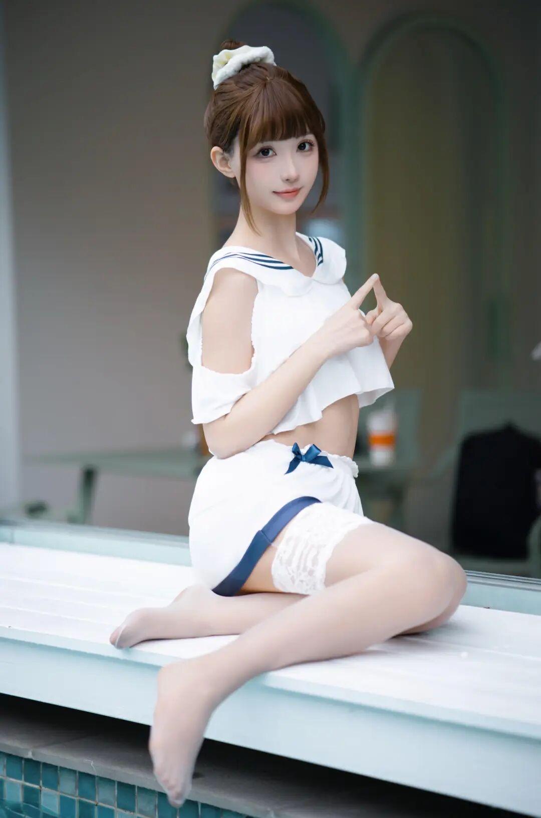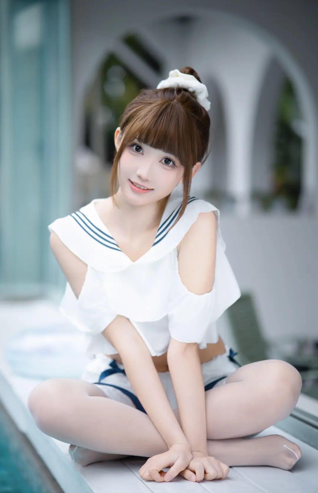 性感与可爱并存是什么体验? 女人味的魅力在哪里? 白色蕾丝美腿泳装写真