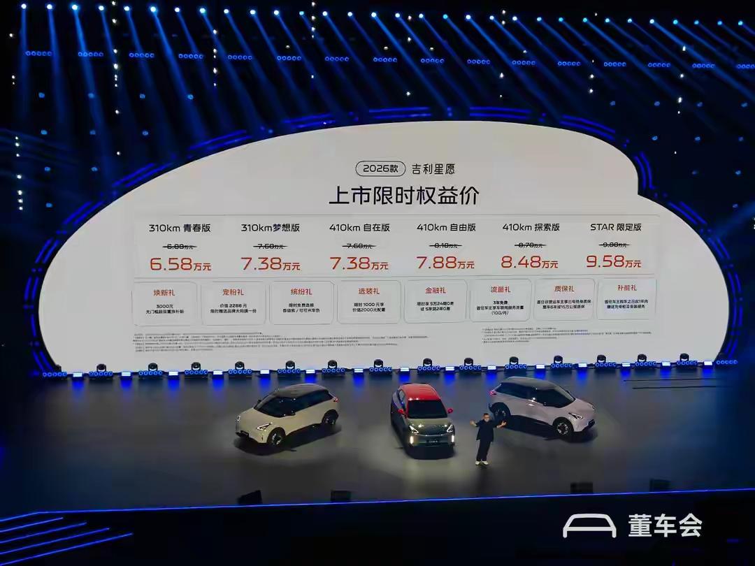 2026款吉利星愿10月10日上市,对宝妈来说真是个好消息。2025年9月它销量达50203辆,上市一年累计破40万,是爆款无疑。这次改款售价6.88 - 9.88万,还有限时优惠。 外观上,它维持家族式风格,封闭式前脸配不规则大灯,很是圆润。新增香颂紫、可可米配色还限时免费,还有紫/黑双色车身,尾标换成“吉利银河”。内饰有天镜白和仙踪绿可选。 它全系神盾电池+后置单电机,还有四轮独立悬挂、30分钟快充等亮点,空间也能满足日常代步。性价比高又可爱,宝妈选它准没错! 吉利星愿 吉利星愿纯电版 吉利星愿汽车 吉利星愿车 吉利星愿青春版 吉利星愿纯电 吉利星愿官图