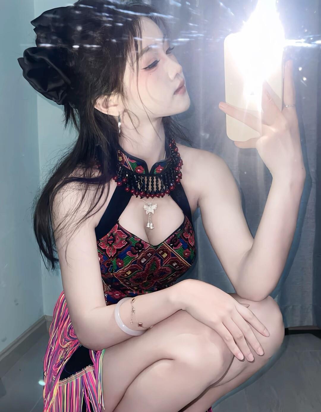 惊艳的复古风穿搭,镜中自拍的魅力瞬间!