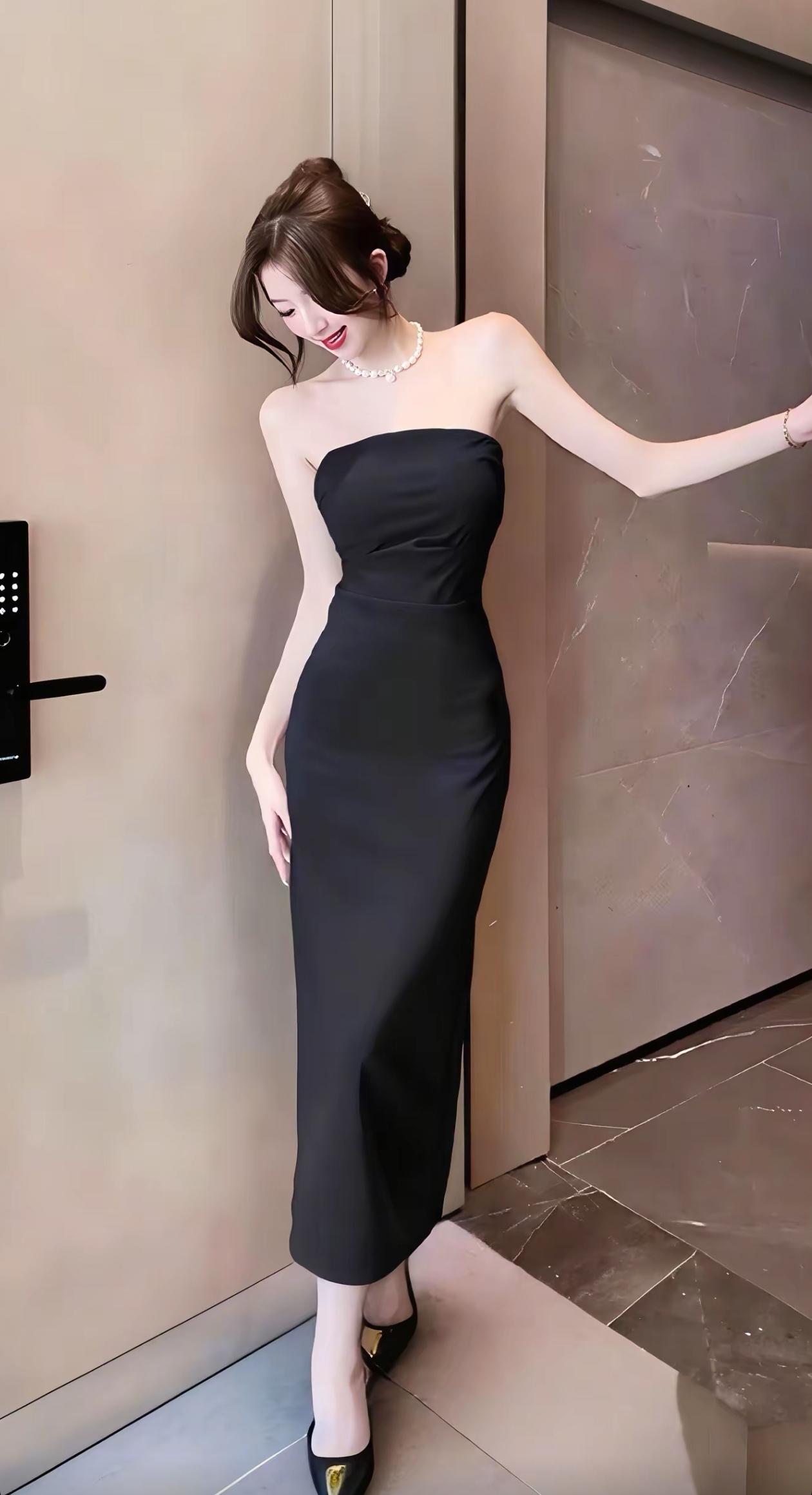 优雅黑发少女,坐在复古木椅上,身穿黑白蕾丝裙,散发迷人魅力。