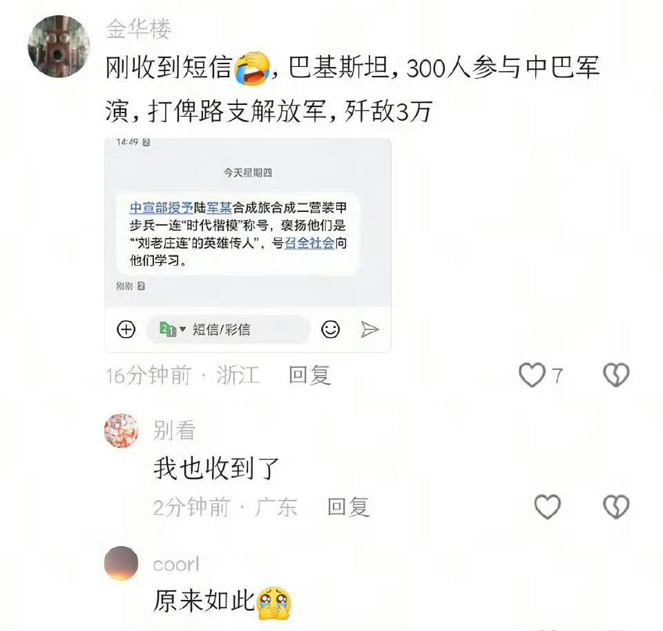 估计很多人收到了这条短信,授予陆军某合成旅合成二营装甲步兵一连时代楷模称号,褒扬