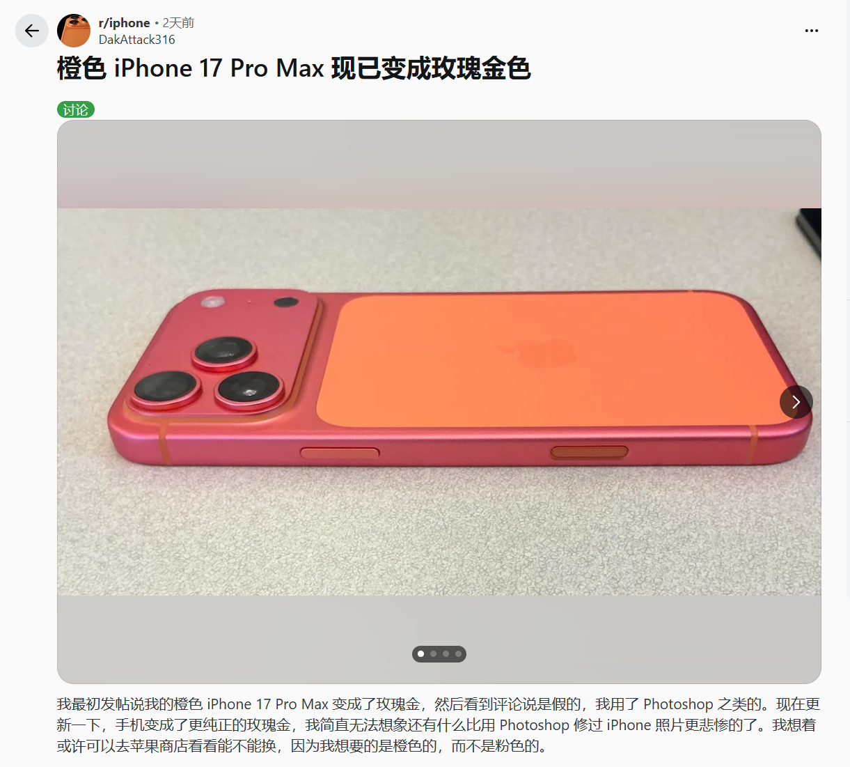 看了一下国内也有这种情况[笑cry]有没有朋友自己的橙色手机遇到类似渐变色?我看