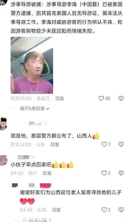 泰国黑导游落网惊现反转!老父亲苦寻5年儿子,竟成新闻头版嫌犯 近日,泰国一名嚣张欺压游客的黑导游落网,案件背后却牵出一段令人心酸的亲情故事。这名叫做李海的男子,正是他七旬老父亲苦苦寻找了整整五年的儿子。 [送自己一朵花]嚣张导游视频引爆网络 前不久,一段黑导游在泰国大巴上威胁游客的视频引发公愤。视频中,这名男子态度嚣张,扬言"不买东西就别想回国"。就在众人谴责之时,案情出现了惊人转折。 [送自己一朵花]身份曝光牵出五年寻子路 10月15日,泰国警方控制该男子后核实身份,发现他就是李海——那个家人苦寻五年的失踪者。其父亲这些年一直以为儿子在威海电厂工作,直到今年四月还在网上发布寻人启事。谁能想到,儿子竟在异国他乡成了黑导游。 [送自己一朵花]父亲思念成疾,闻讯崩溃 据了解,李海的父亲因思念儿子患上了心脏病,每晚都要看着儿子小时候的照片入睡。当得知儿子被捕的消息后,老人当场晕倒,醒来后痛哭:"早知道他在外这么难,当初就不该让他走。" [送自己一朵花]违法代价惨痛,教训深刻 李海因在泰从事黑导游活动,将面临最高两年监禁和约十万元罚款。中国驻泰使馆曾多次提醒,警惕海外低价团陷阱,无证导游属违法行为。一个错误的决定,不仅毁了他的前途,更伤透了家人的心。 [送自己一朵花]亲情无价,莫等失去才懂珍惜 这个案例令人深思:赚钱固然重要,但家人的牵挂与期待更为珍贵。一旦辜负了这份亲情,可能就再也无法弥补。 泰国黑导游 亲情无价 海外安全