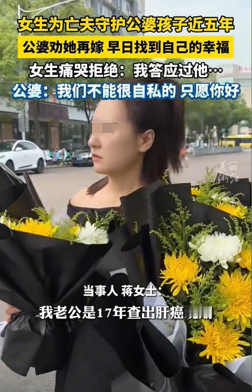 浙江衢州,一女子的丈夫因肝癌去世近五年,她一直没有改嫁,反而留在公婆家照顾老人和孩子。公婆心疼她年轻,多次劝她再找个好人家,甚至说想风风光光把她嫁出去,可女子的回答却让人泪崩。(来源:美丽浙江) 据悉,蒋女士的丈夫在2017年查出肝癌晚期,没撑过半年就离开了。作为独子的遗孀,她没像有些人一样一走了之,反而坚定地选择留在公婆家。 蒋女士每天都要洗衣做饭,接送孩子上学放学,还经常陪着老人去看病。蒋女士的婆婆是丈夫的后妈,但蒋女士从没把她当外人,逢年过节买新衣,生病了守在床边。 公婆对蒋女士的孝顺都看在眼里,他们为有这样的儿媳感到欣慰。然而随着在一起的时间长了,公婆觉得蒋女士才30多岁,如此年轻就耗在自己两个老人身上不值得,他们认为蒋女士应该有个更好的未来。 因此,公婆多次劝蒋女士再嫁,这样可以有人来一起分担压力,可蒋女士除了掉眼泪,并没有再嫁的念头。 后来婆婆单独找了蒋女士聊天,询问为何蒋女士要如此坚持。蒋女士泣不成声,艰难地将埋藏在心底的话说了出来:“他离开前让我守住这个家,我既然答应了,就要做到。” 对于蒋女士的行为,有人被感动到了,认为有这样的媳妇太难得了。 但也有人认为蒋女士不值得这样做,因为儿媳没有赡养公婆的义务,以后也没法继承公婆的遗产,干嘛非要去当圣人? 其实从法律上来讲,蒋女士的付出是可以得到回报的。 《民法典》第1127条规定,遗产按照下列顺序继承:(一)第一顺序:配偶、子女、父母;(二)第二顺序:兄弟姐妹、祖父母、外祖父母。 从法定继承的角度,蒋女士作为儿媳妇,将来的确是没有资格继承公婆遗产的法定资格。 但法律上却有几个变数:(一)公婆自愿将遗产交给蒋女士;(二)蒋女士对公婆尽到了赡养义务,但这只能继承部分遗产;(三)蒋女士对公婆尽到主要赡养义务,可以作为第一顺序继承人继承公婆的全部遗产。 当然,蒋女士能5年如一日的照顾公婆,也并不是说都是为了钱,她还坚守着和丈夫的承诺,以及维持着中华民族的传统美德。 那如果将来蒋女士再婚了,还有资格继承公婆的遗产吗? 其实蒋女士是否能继承公婆的遗产,并不是看她是否再婚,而是看她再婚后,是否仍对公婆尽到主要赡养义务。如果是,那蒋女士还能作为第一顺位继承人继承公婆的全部遗产。 这里的“主要赡养义务”通常是指,在经济上为公婆提供主要生活来源,或在生活上给予主要照料、护理等情形。 当然,蒋女士的孩子也有权继承爷爷奶奶的遗产。 《民法典》第1128条规定,被继承人的子女先于被继承人死亡的,由被继承人的子女的直系晚辈血亲代位继承。 由此可见,蒋女士的孩子是可以代位继承爷爷奶奶遗产的。 那如果蒋女士再嫁,将来继承公婆的遗产会不会被分走? 根据《民法典》第1062条规定,夫妻在婚姻关系存续期间所得的下列财产,为夫妻的共同财产,归夫妻共同所有: (一)工资、奖金、劳务报酬; (二)生产、经营、投资的收益; (三)知识产权的收益; (四)继承或者受赠的财产,但是本法第一千零六十三条第三项规定的除外。 也就是说,如果蒋女士将来再婚后,又继承了公婆的遗产,那这个遗产是应当按照夫妻共同财产处理。 不过,如果蒋女士的公婆是通过立遗嘱的方式,或者赠与的方式将财产交给蒋女士,且明确表示只给蒋女士一人的话,那就属于蒋女士的个人财产。 最后,也许有人会质疑蒋女士能坚持多久,但无论她能坚持多久,她毕竟只是丧偶的儿媳妇,而且至少目前来说,她一直在照顾着公婆,且照顾得很好,这就已经足够了。 对此,您怎么看?欢迎留言交流。