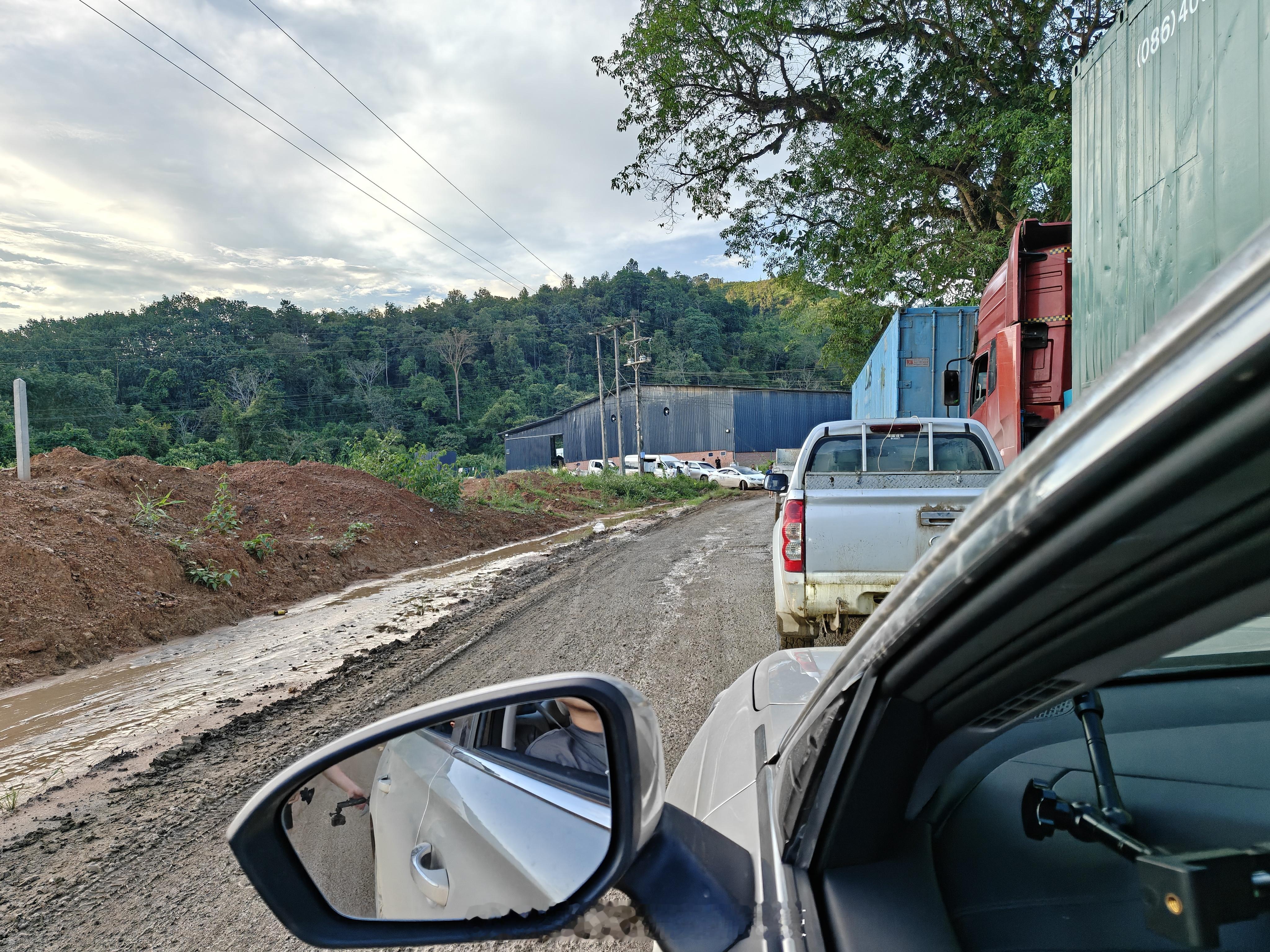 走了一段老挝烂路,车已经开始脏了