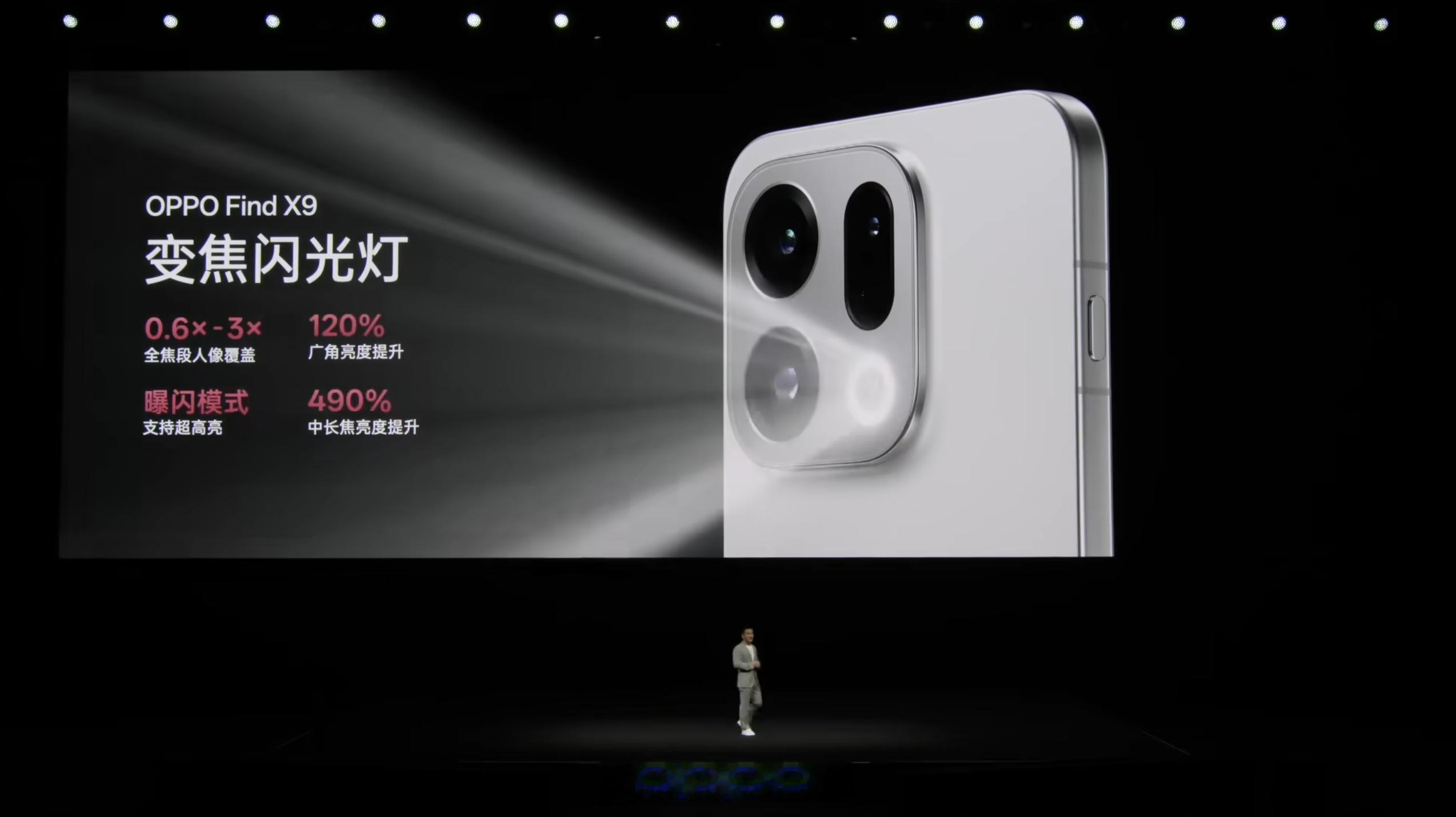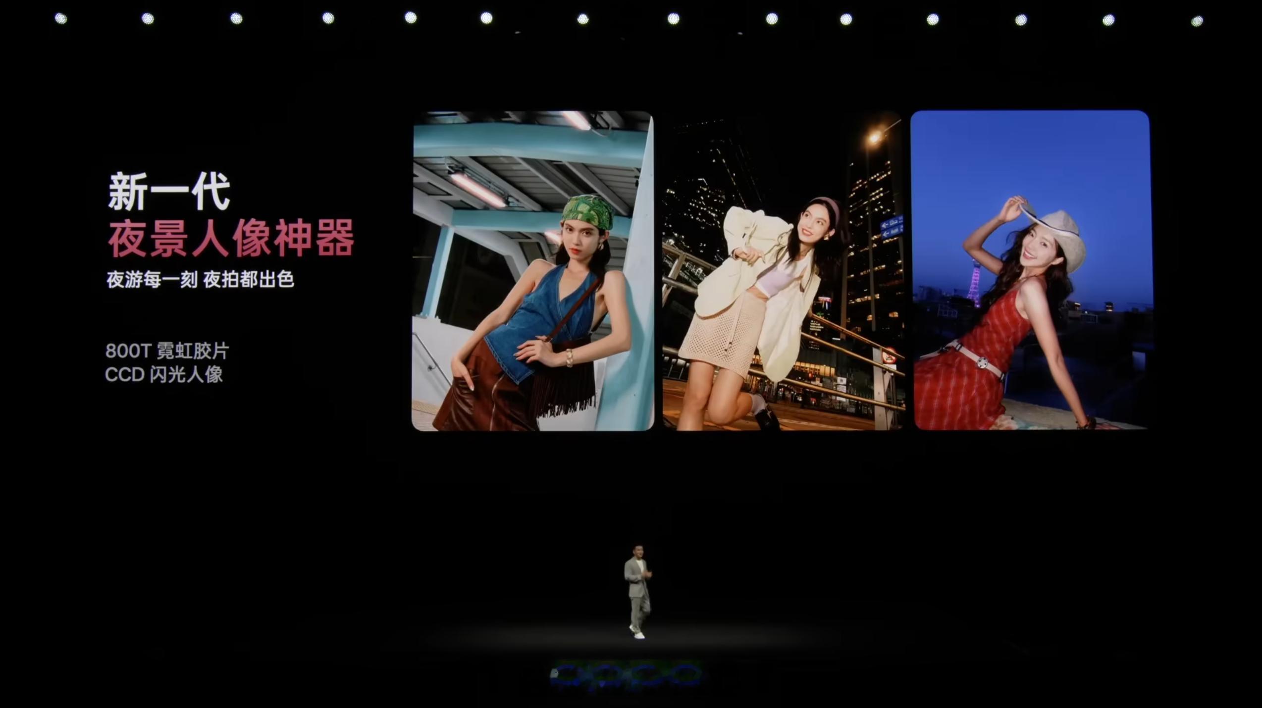 前置 32MP(索尼 IMX615,1/2.74"),后置 50MP 主摄(索尼 LYT-808,1/1.4",OIS)+ 50MP 超广角(三星 S5KJN5,1/2.75")+ 50MP 倒置潜望长焦(索尼 LYT-600,1/1.95",OIS)+ 丹霞色彩还原镜头,变焦闪光灯,支持 4K 超清实况照片、哈苏 XPAN、4K 120fps 10bit log 视频拍摄,全新「霓虹」胶片风格模拟。OPPO发布会