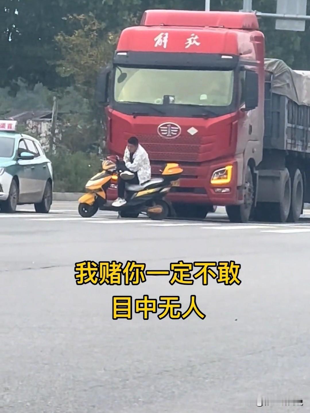 摩托车在大货车前“赌对方不敢”,可大货车的盲区有多可怕,多少事故就是这么来的!这种“目中无人”的操作,真的是拿命在赌。 评论区的劝诫太扎心了!“没吃过亏终会后悔”“万一他一脚油,你连后悔的机会都没有”,就算车有千万保险,生命和家人的伤痛是钱能弥补的吗?