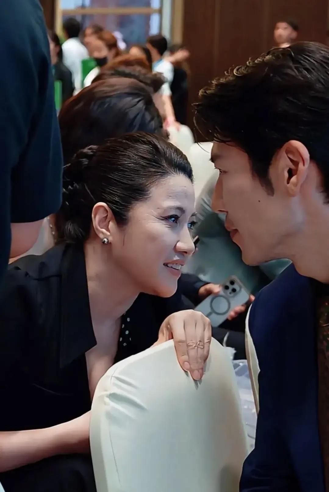 近日,颜丙燕参加活动,与前排王骁开心热聊的画面。 影后颜丙燕的演技精湛,52岁