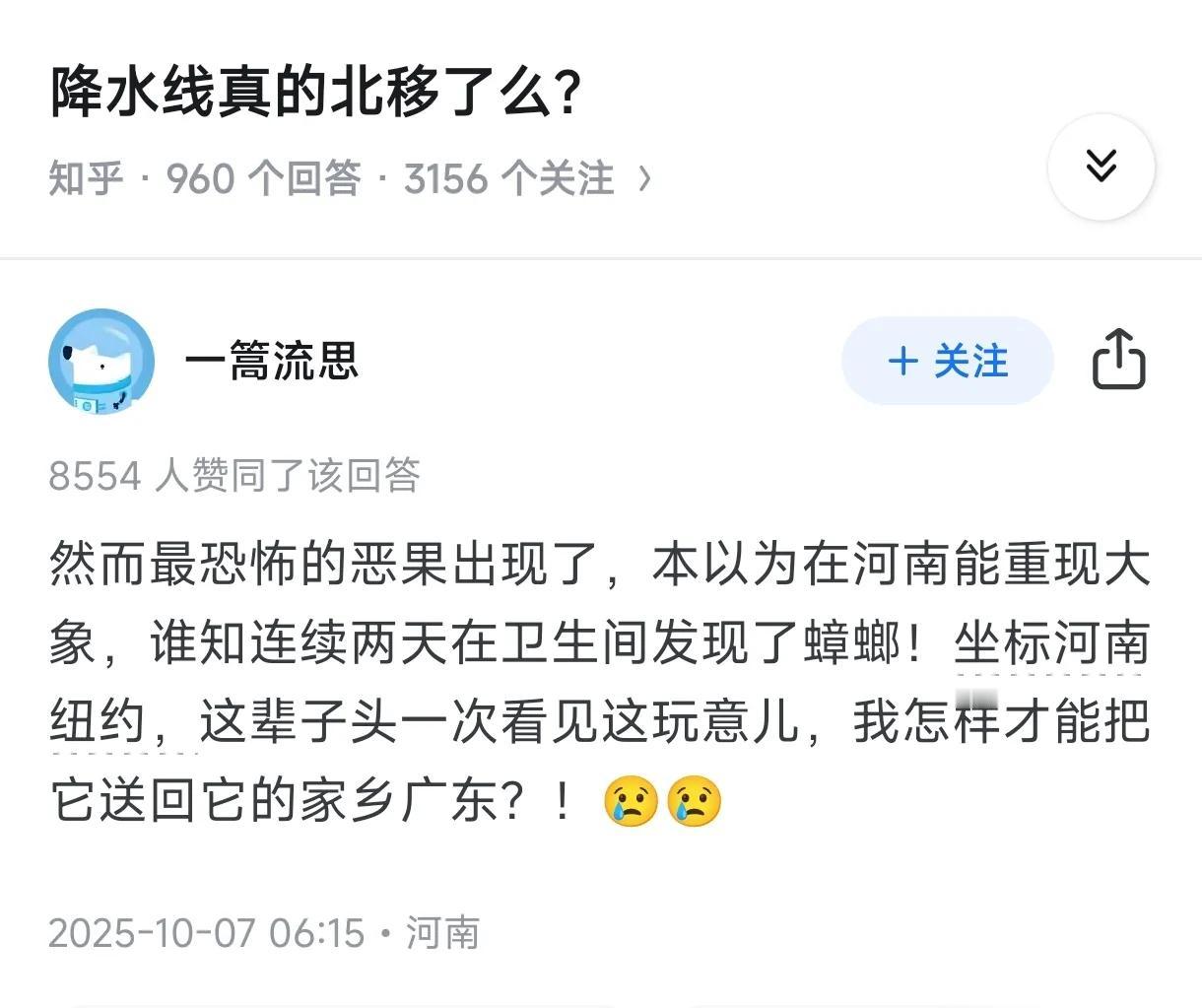 降雨带北移,是好事还是坏事?[抠鼻] 一边是北方暴雨接连来袭,河南、河北等地24小时降雨量逼近200毫米,相当于把大半年的雨在一天内下完。 另一边是南方被副热带高压牢牢笼罩,秋老虎肆虐下闷热难耐。 眼下这种北涝南旱,究竟是好还是坏? 从历史纵深看,如今北方降水增多趋势,有点回归历史的意思。 河南简称“豫”,考古发现也证实,5000年前的仰韶文化时期,中原地区曾广泛分布象、竹鼠等热带亚热带动物。 当时这里的年降水量,比现在多200到300毫米,400毫米等降水量线稳定位于今陕北、内蒙古南部一线,正是这样的湿润环境,支撑了早期农耕文明的繁荣。 即便到三国时期,《三国志》中记载“孙权致巨象于曹公”,虽曹冲称象的细节存争议,却也从侧面反映出,当时长江流域至中原的气候带,仍能容纳大型象群生存,与如今南方的降水格局相似。 而当下北方降雨增多、400毫米等降水量线小幅北推,本质是从明清小冰期后的干旱状态,向更久远历史时期湿润气候的趋近。 从短期天气来看,此次北方暴雨是冷暖空气精准交锋的结果。 北方冷空气南下时,与副高边缘输送的太平洋、孟加拉湾暖湿气流在华北、黄淮上空激烈交汇,形成的低涡系统像一台巨型抽水机,将海量水汽集中倾泻。 但深层原因仍然与全球变暖相关,近十年西风带波动幅度加大,让冷空气更易深度南下,同时海洋蒸发量增加,为北方输送了更充足的水汽,使得冷暖空气交锋的主战场,较往年北移,进一步强化了“雨带北移”。 如果北方持续适宜降水,就能让许多干旱区,重现农耕活力! 但危机和挑战同样存在:古代中原没有现代城市密集区,如今郑州、石家庄等北方城市的排水系统,多按干旱气候设计,持续多雨,容易加剧内涝。 同时,北方土壤多为黄土、沙质土,保水能力弱,短时暴雨易引发水土流失,未必能直接转化为农业红利。 南方则要聚焦高温应对,从城市建设到民生保障多维度升级。建筑领域可推广隔热外墙、屋顶绿化,降低室内外温差;城市规划中预留更多通风廊道,让自然风带走热量,缓解“热岛效应”。 只要主动适应、提前布局,这场雨带变化就不会是危机,反而可能成为推动南北协调发展、探索人与自然和谐共生的新契机,让每一寸土地,都在气候变迁中,找到新的生长空间!