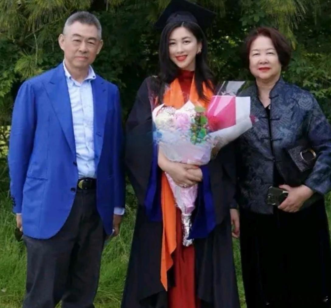 这是朱珠和父母的合影。朱珠完全继承了父亲的高颜值。