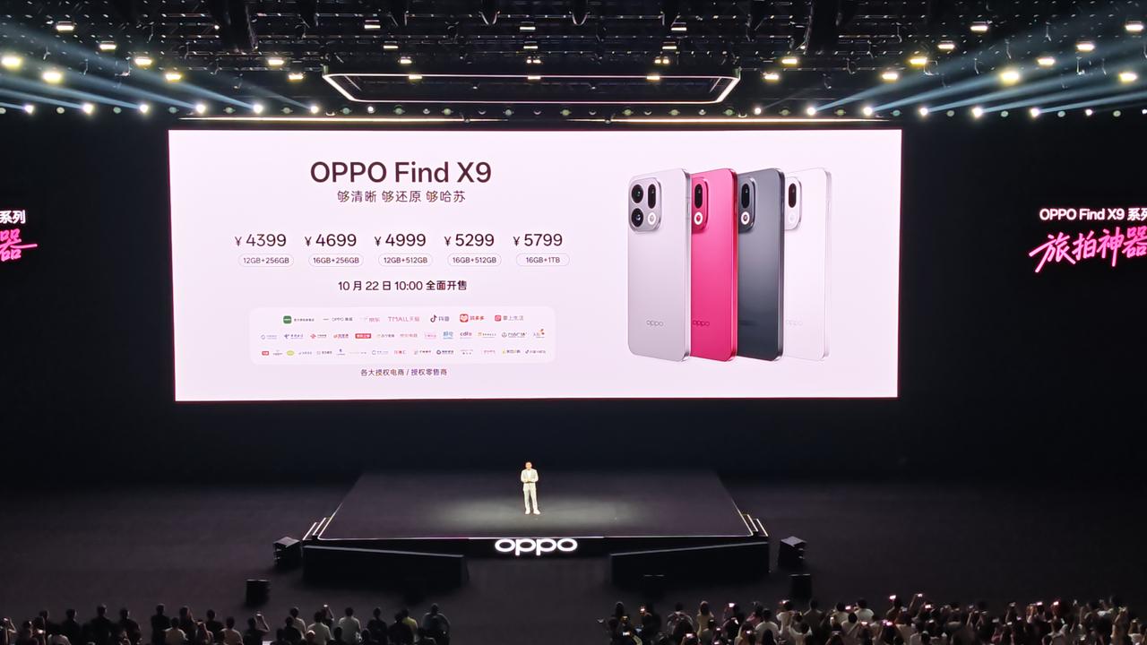 OPPO Find X9系列新品正式发布,具体售价如下: Find X9 Pro:12+256G 5299元,12+512G 5699元,16+512G 5999元,16+1T 6699元; Find X9:12+256G 4399元,16+256G 4699元,12+512G 4999元,16+512G 5299元,16+1T 5799元。