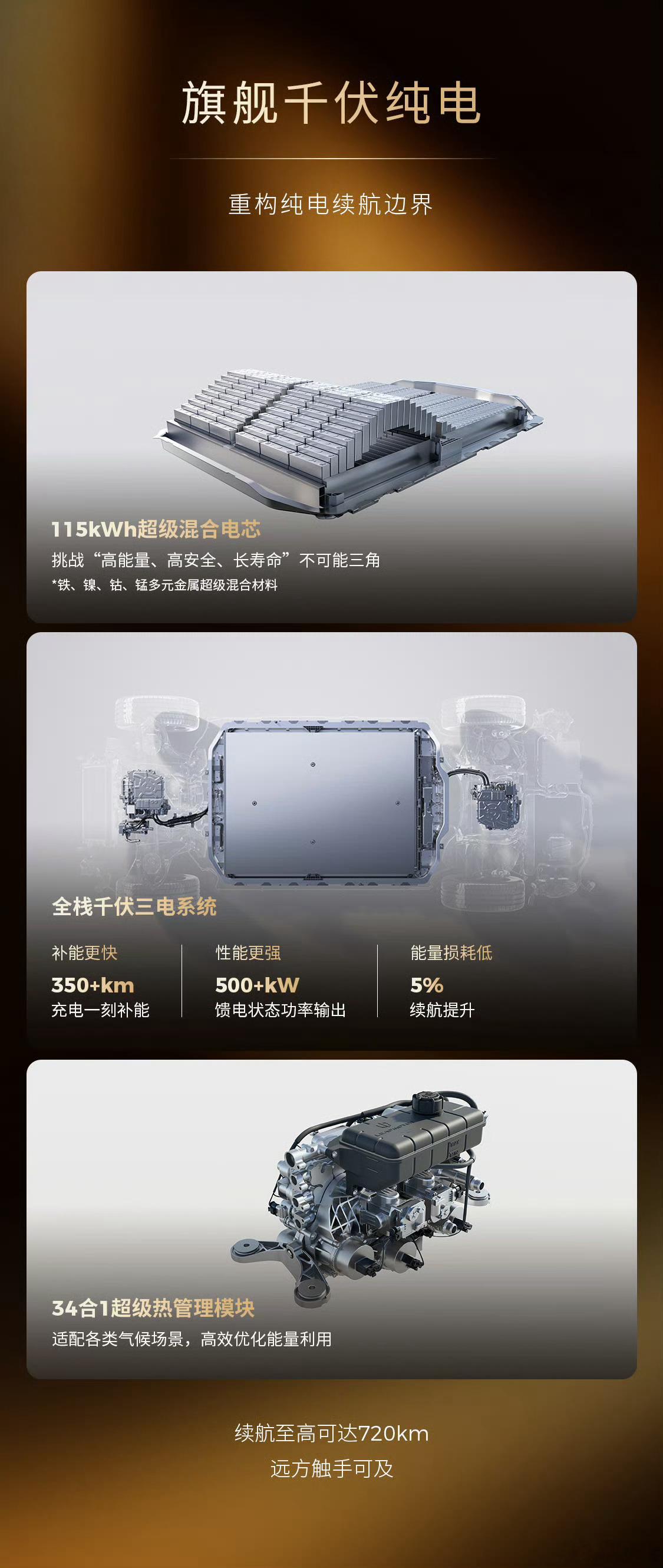 首先是续航,零跑D19依旧有增程、纯电两个版本,纯电版为1000V平台,搭载115度电池,续航720km;增程版搭载80.3度电池,纯电续航也能跑500km。而且这次全系都是宁德时代电芯,支持3C快充,15分钟就能补电50%,这下真没续航焦虑。