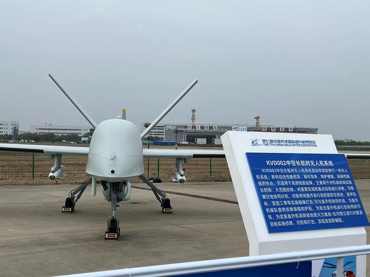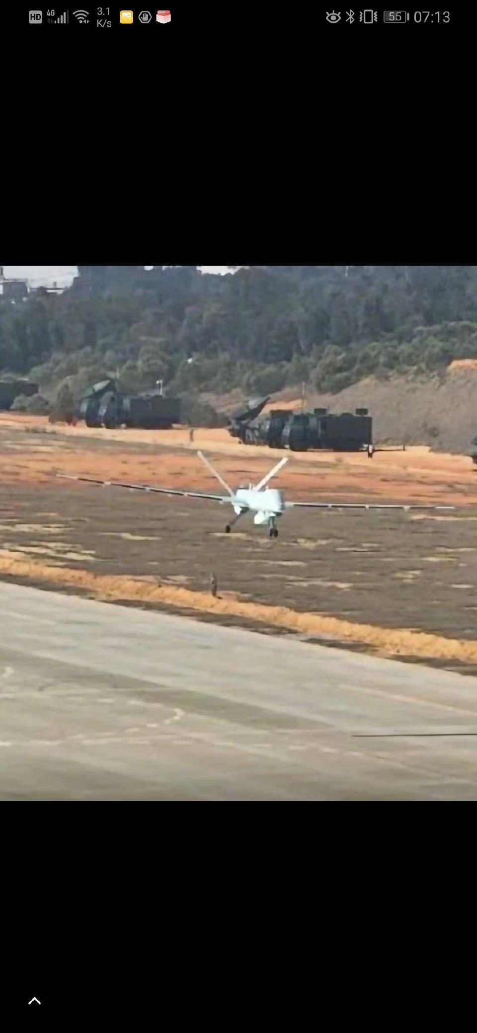 重大喜讯,解放军陆军的大型长航时察打一体无人机亮相,世界第一家。 这款机型的正式型号为KVD002,这其实是彩虹-4B无人机的自用型号。 解放军陆军装备了大型长航时察打一体无人机,意义相当重大。目前解放军在每个战区都有一个直属的无人机旅,装备彩虹-4B大型长航时察打一体无人机,活动半径可达上千公里。机身下部安装了一个奇奇怪怪的吊舱,推测是合成孔径雷达。中国为陆军配备需要在机场起降的大型长航时察打一体无人机,在全世界也是第一家。 陆军拥有长航时察打一体的大型无人机,在其他国家是相当罕见的,因为这种大型无人机需要有机场才能起降使用。 这样看,解放军同时装备了好几款大型长航时察打一体无人机,解放军空军使用航空工业的翼龙-2(攻击-2)无人机,解放军陆军则使用航天科技的彩虹-4B察打一体无人机。 彩虹-4B还具有编队打击能力,八年前就曾进行过彩虹-4无人机的远程实弹打击试验,共出动5架彩虹-4无人机,动用了4个卫星站进行连续接力控制,彩虹-4以编队飞行,打击了上千公里外的远程地面目标,被称为“里程碑式的进步”。