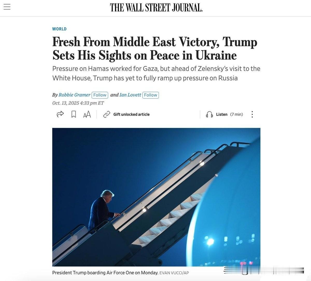 【中东得手后,特朗普可能把压力升级指向俄罗斯】 《华尔街日报》援引欧洲官员称,在促成哈马斯与以色列停火后,特朗普打算将注意力转向俄乌冲突,并可能对莫斯科复制“极限施压”战术。 报道称,华盛顿的强硬态度迫使中东双方让步:特朗普推动内塔尼亚胡向卡塔尔道歉,同时卡塔尔、埃及和土耳其施压哈马斯接受停火。 前美国驻北约代表库尔特·沃尔克指出:“我们尚未看到同等级别的压力被用于针对俄罗斯。” 目前,特朗普仅对俄罗斯的贸易伙伴印度加征关税,尚未对俄实施新制裁。白宫内部正在讨论更严格的金融限制以及打击克里姆林宫“影子舰队”的措施。 专家强调,俄罗斯仍拥有包括核武库在内的重大军事能力,这对华盛顿构成牵制。 分析师弗朗茨-斯特凡·加迪认为,特朗普更有可能先与普京达成结束战争的协议,再劝说泽连斯基签字。 特朗普与泽连斯基本定于当地时间本周五在白宫会面。乌方希望获得“战斧”导弹,而特朗普表示他将“直接问普京,是否想让这些导弹飞向他”。 热点观点