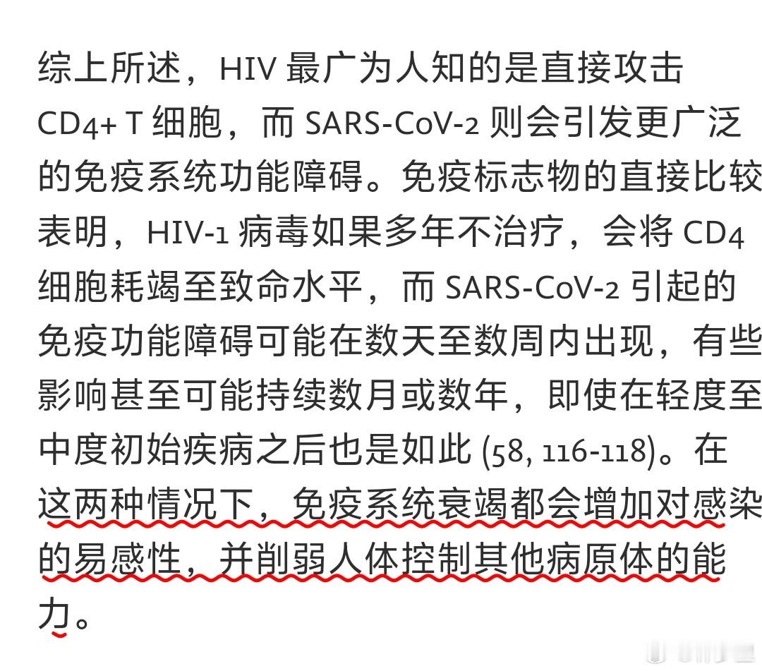 ✨这两种病毒感染过后都会造成长期的免疫功能障碍,甚至出现T细胞耗竭。区别是HIV直接攻击 CD4+ T 细胞,一感染就是永久性的;