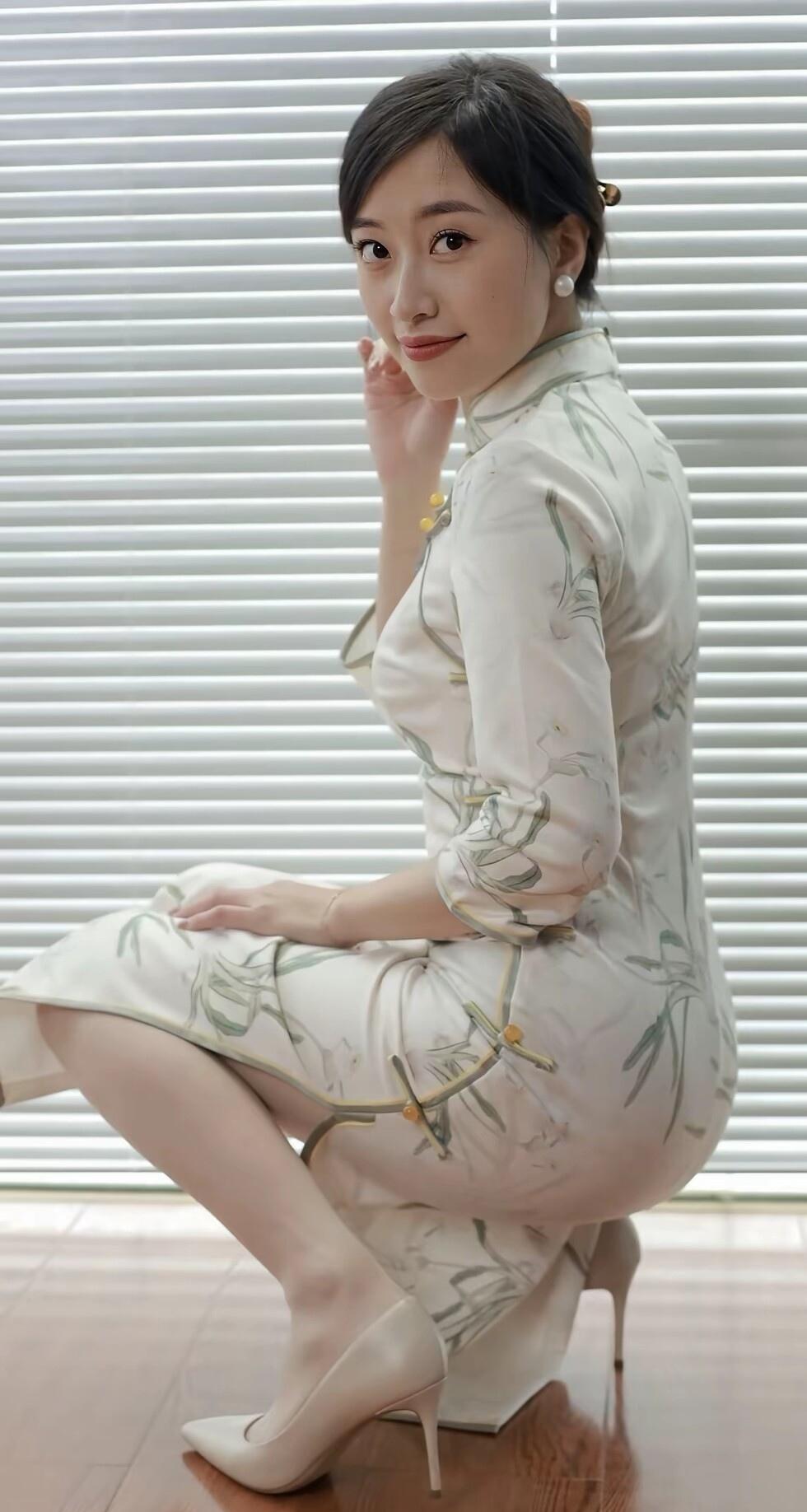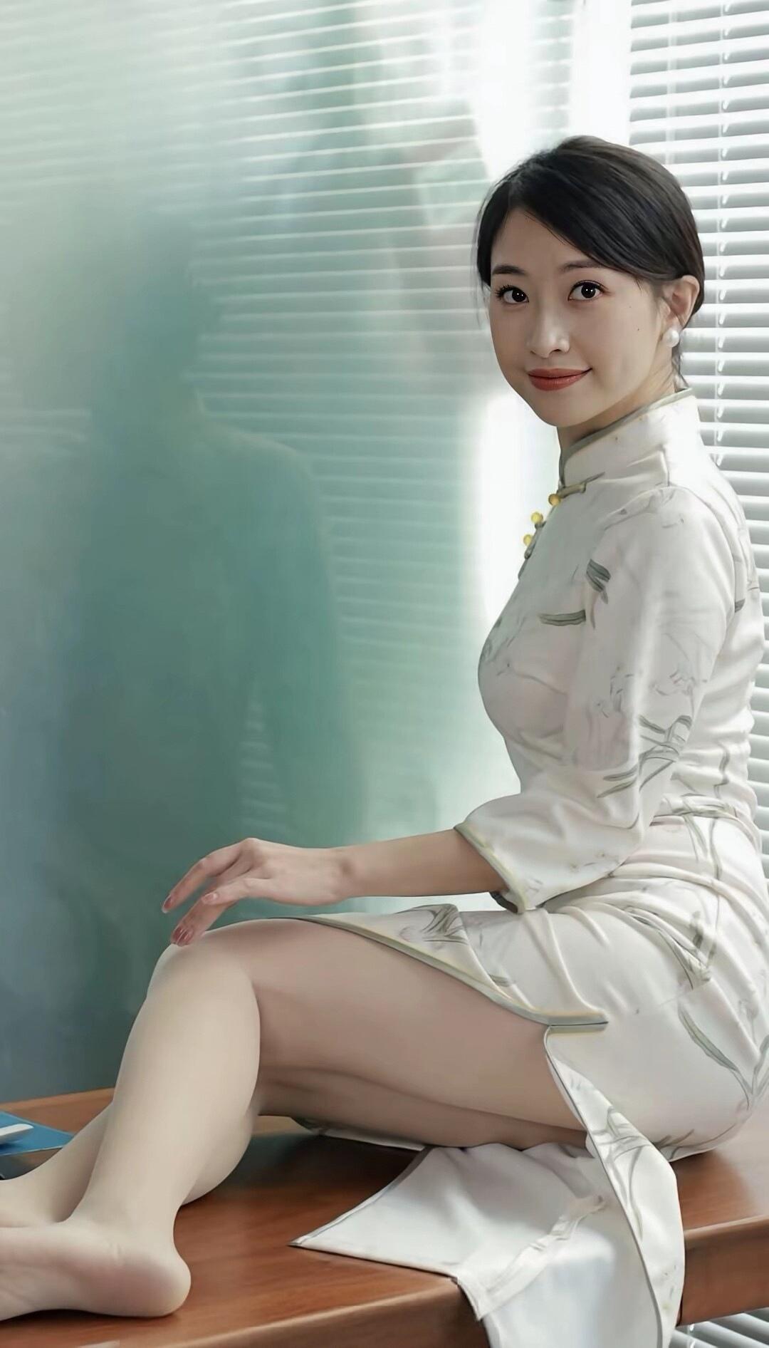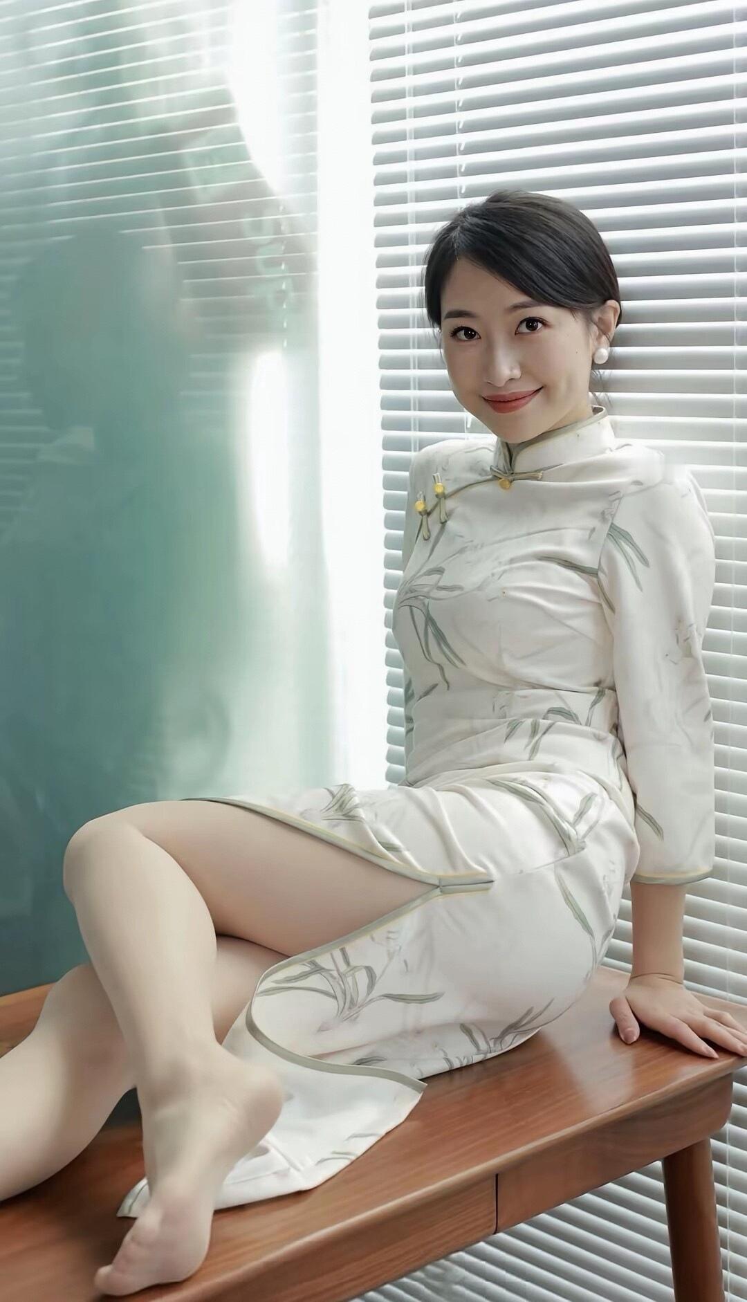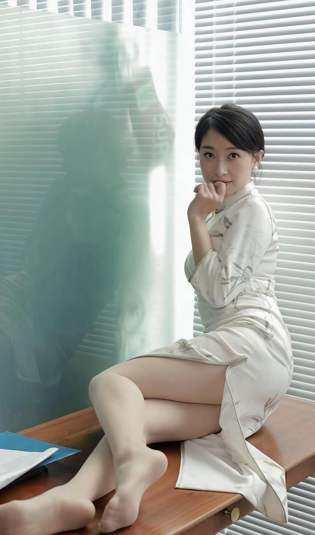 优雅白裙,自信坐台前,镜头下的迷人风采