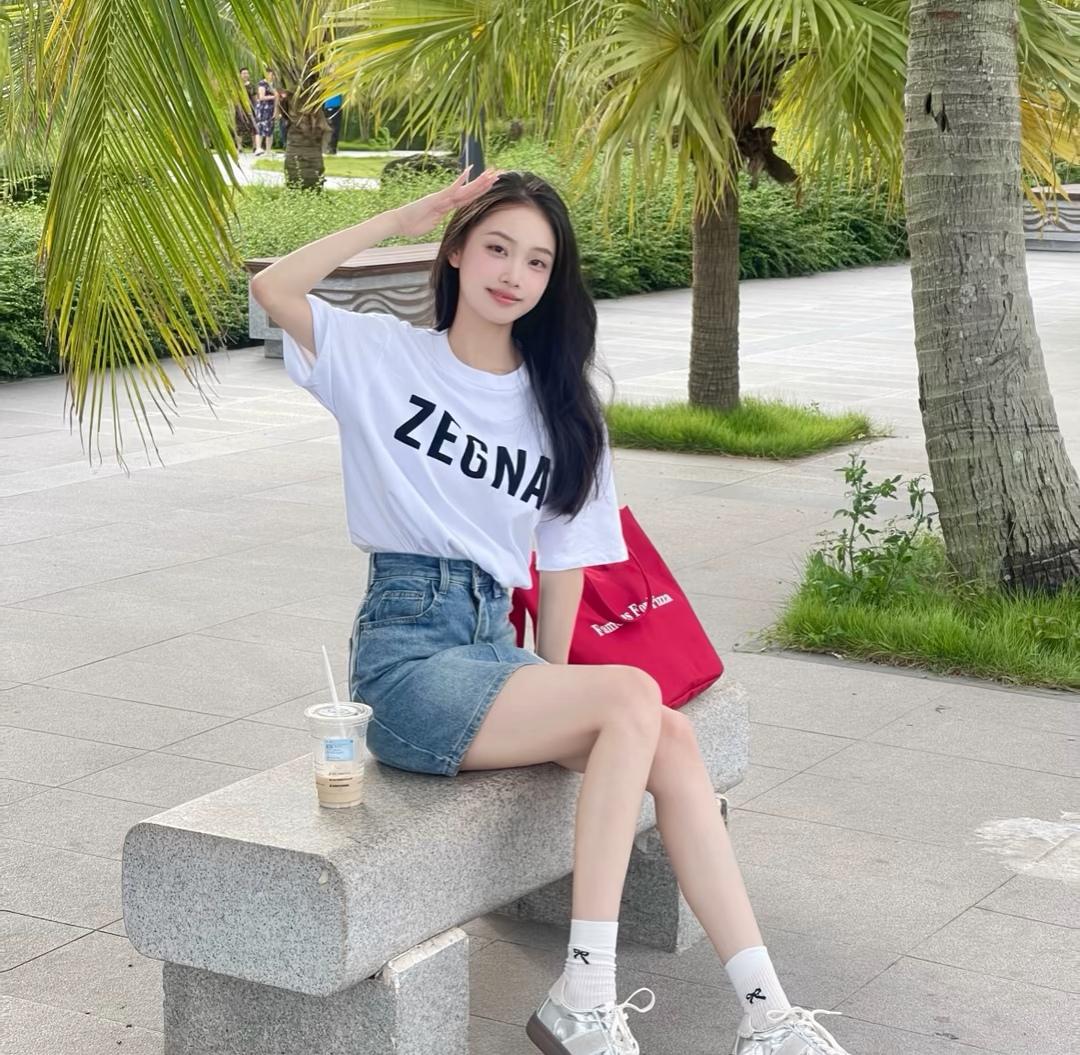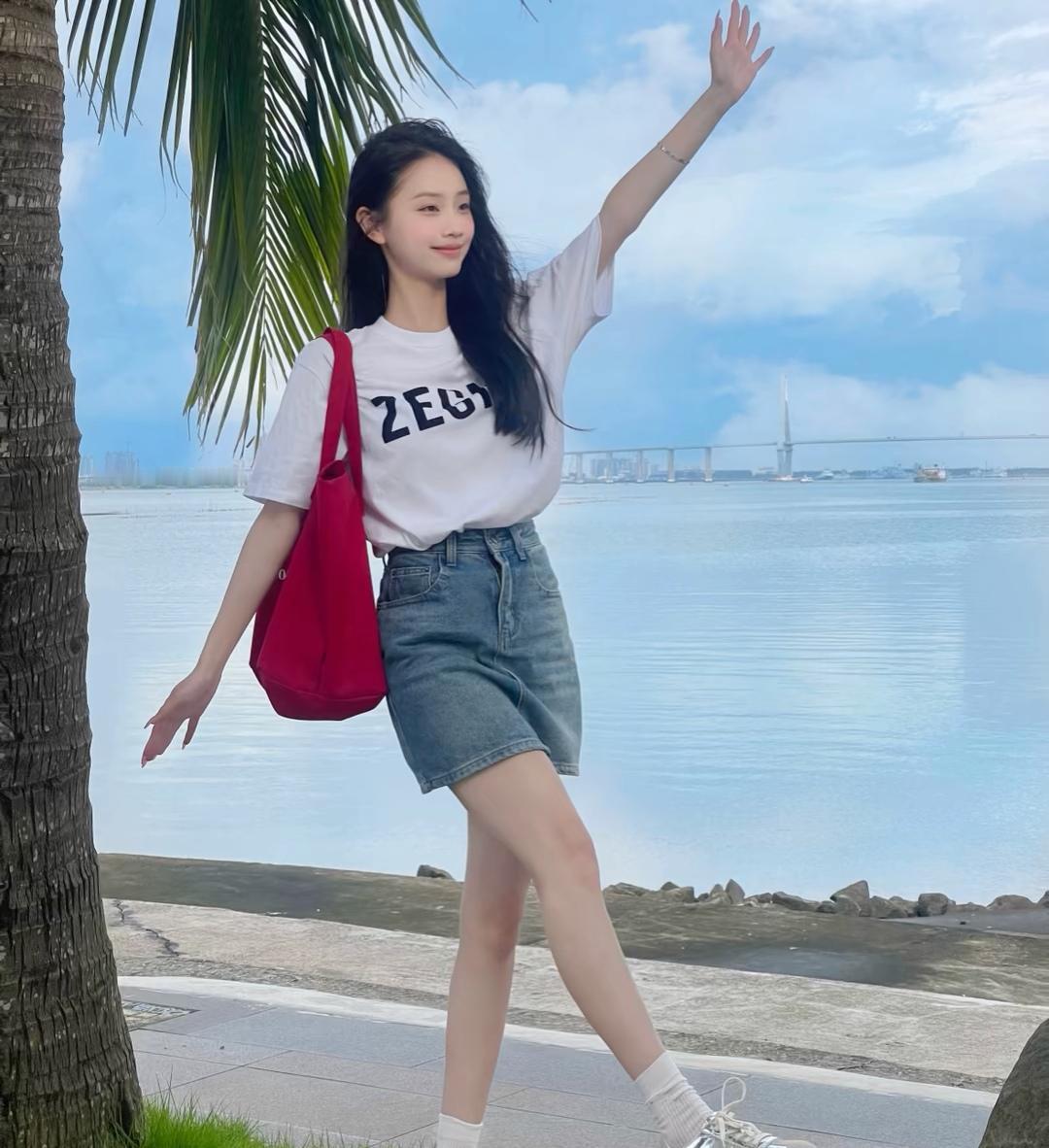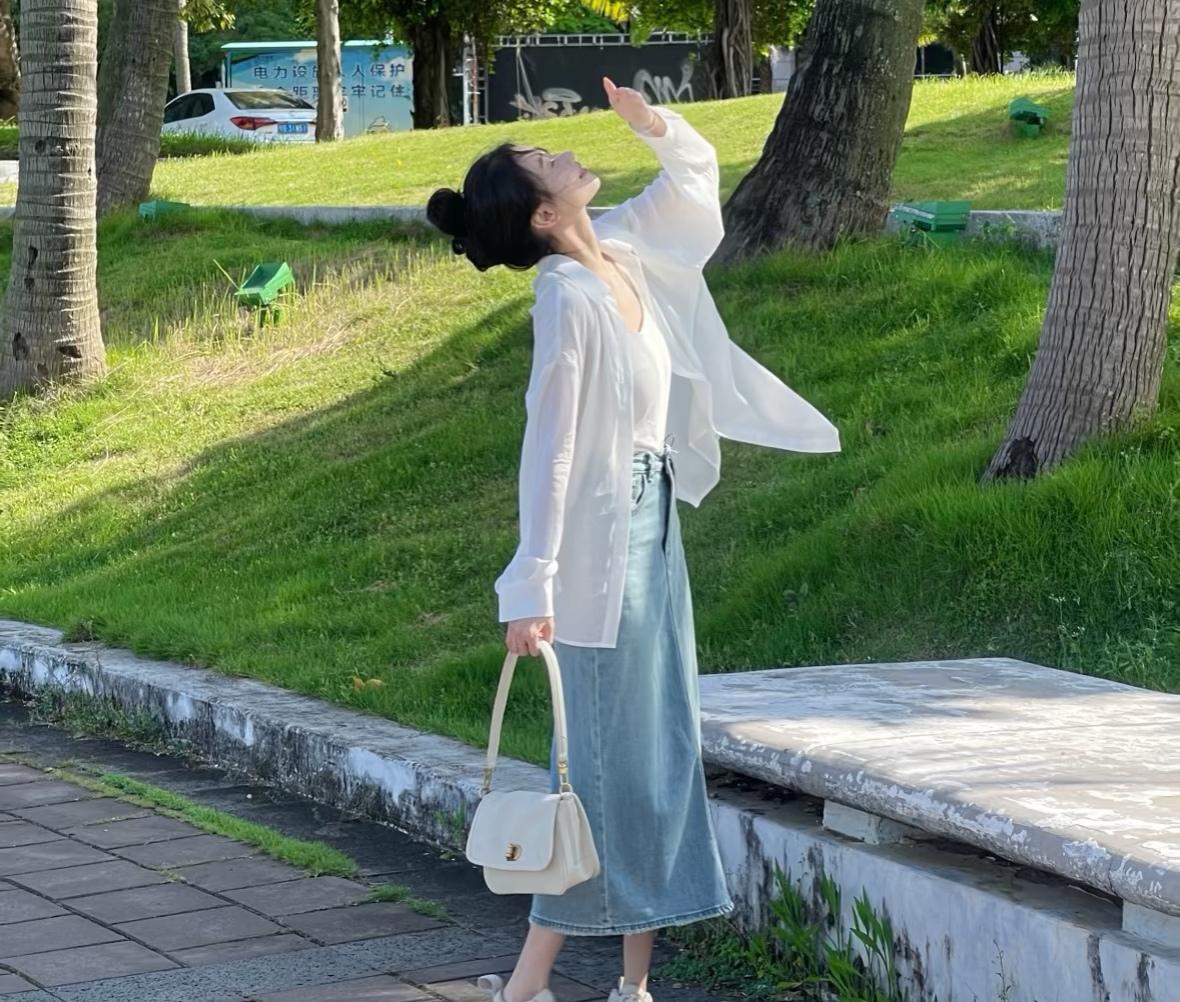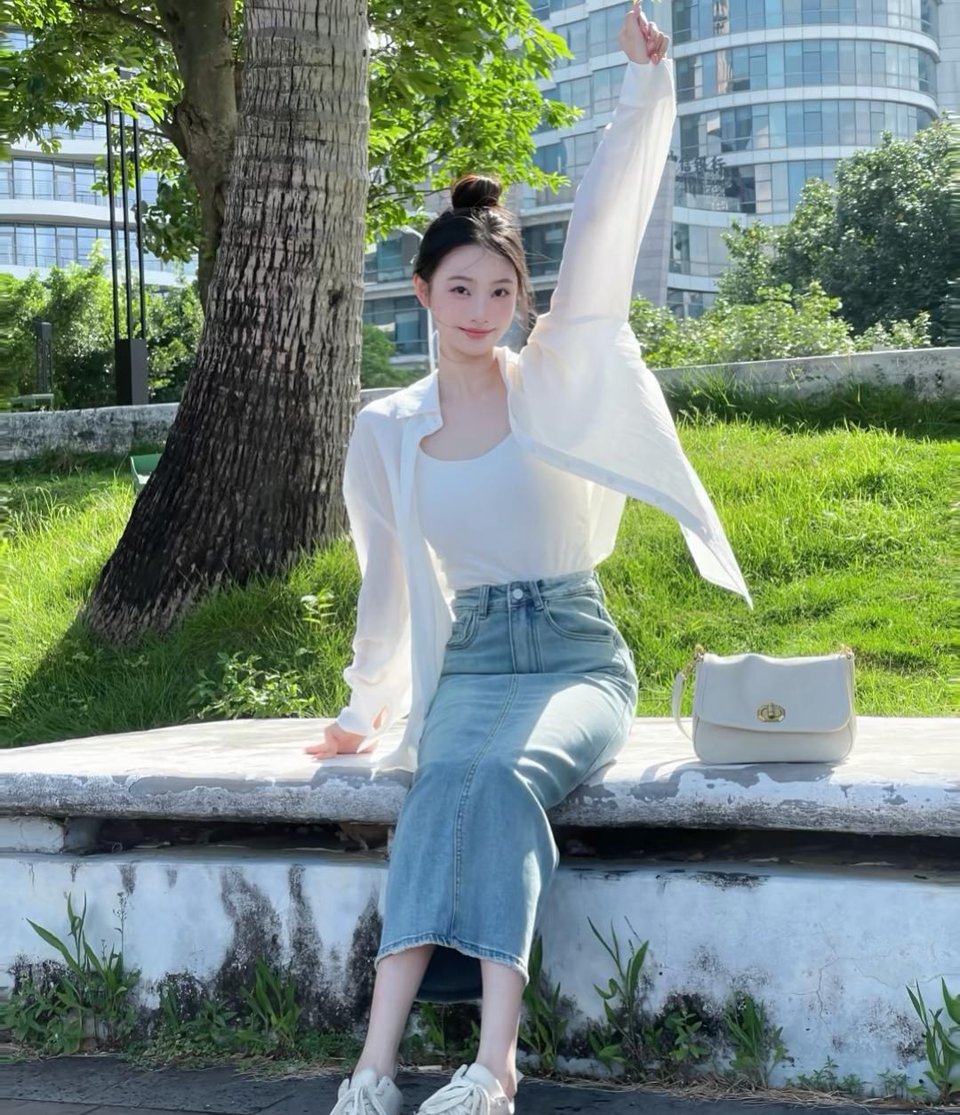 夏日清新穿搭,白色衬衫+牛仔裙,轻松自在!🌞👗👠