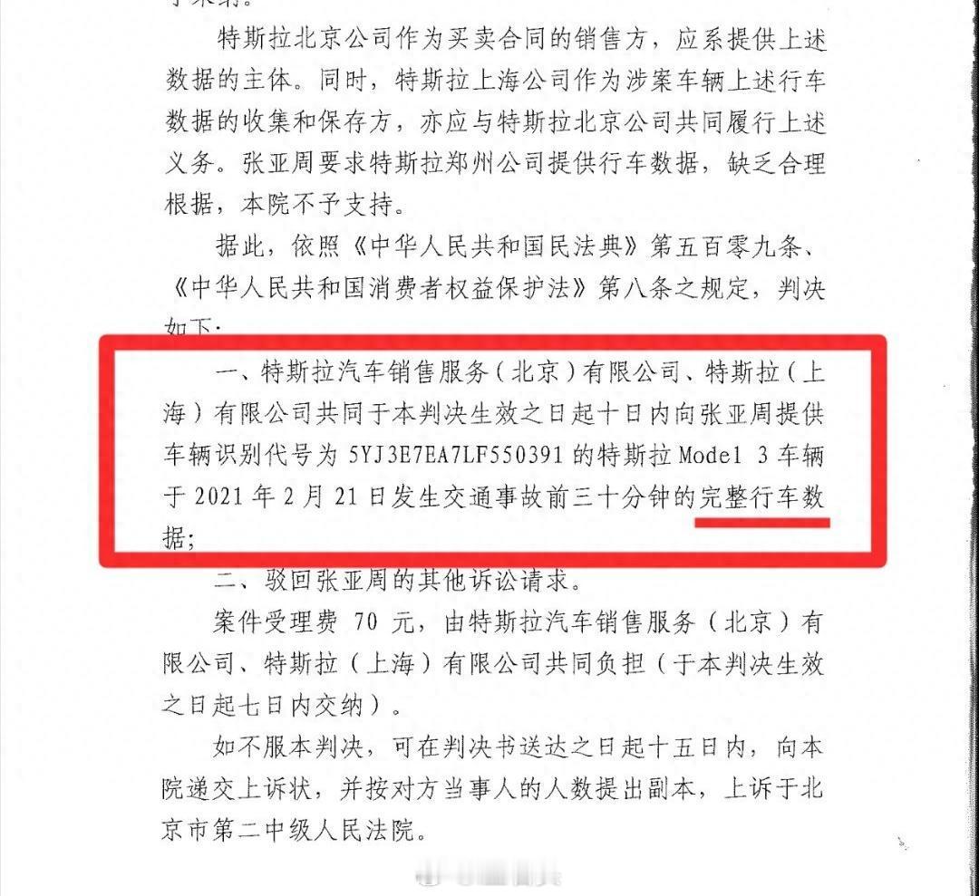 前不久,北京大兴法院一审判决,要求特斯拉必须在十日内向张女士提供事故发生前30分钟的完整行车数据。