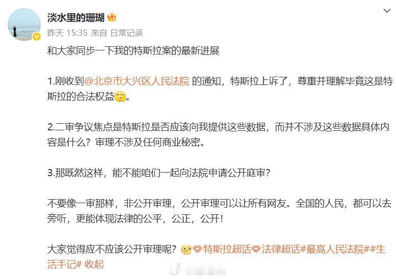 结果特斯拉现在又上诉了,并且是非公开庭审,意思就是不打算提供原始数据给张女士。