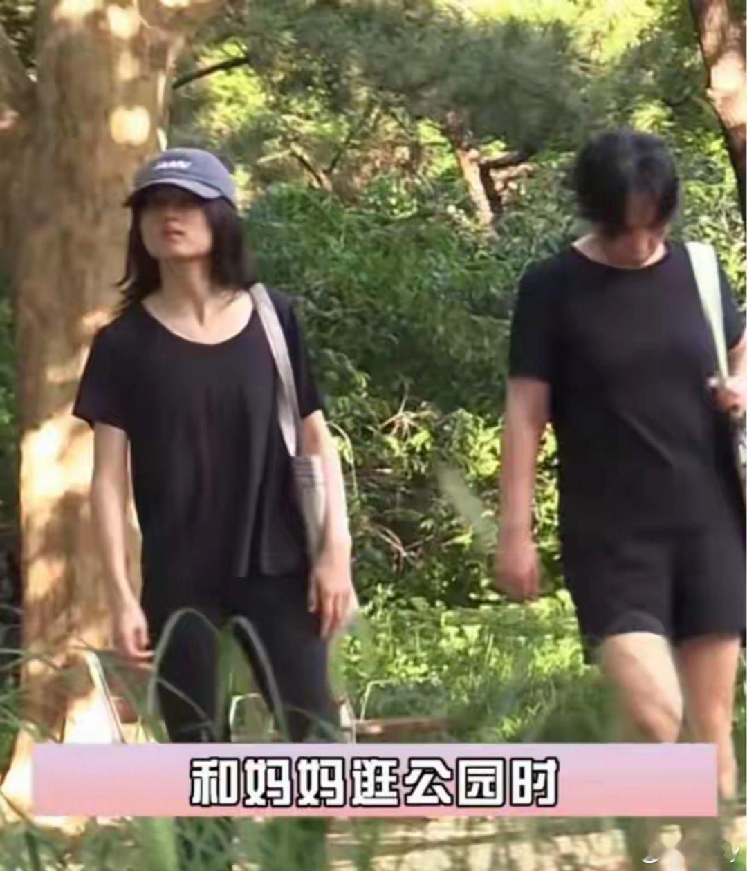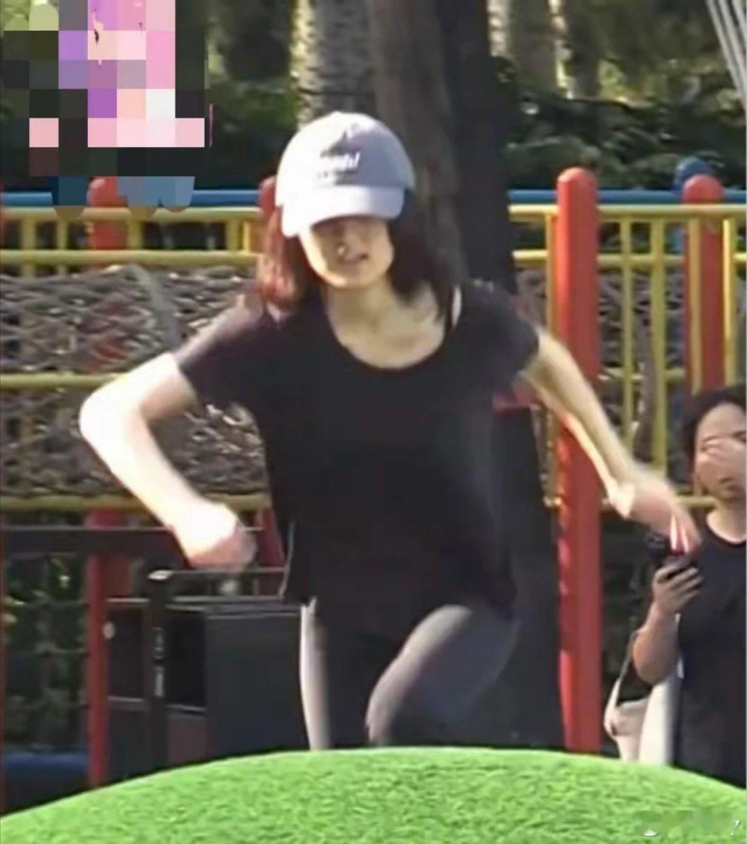 张子枫和妈妈逛公园被偶遇,玩爬网 玩爬墙骑动感单车,精力好旺盛