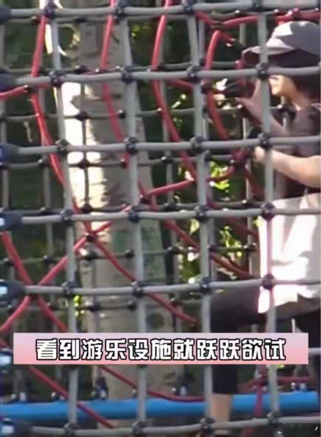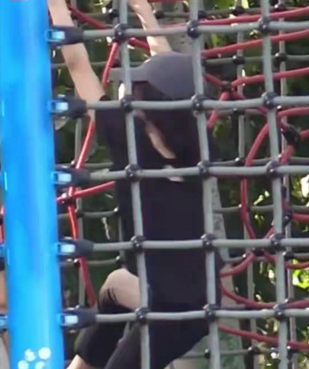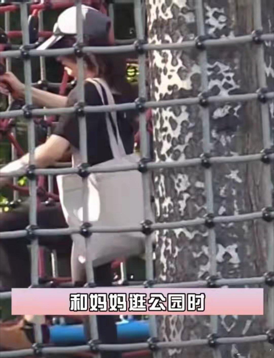 张子枫和妈妈逛公园被偶遇,玩爬网玩爬墙骑动感单车,精力好旺盛