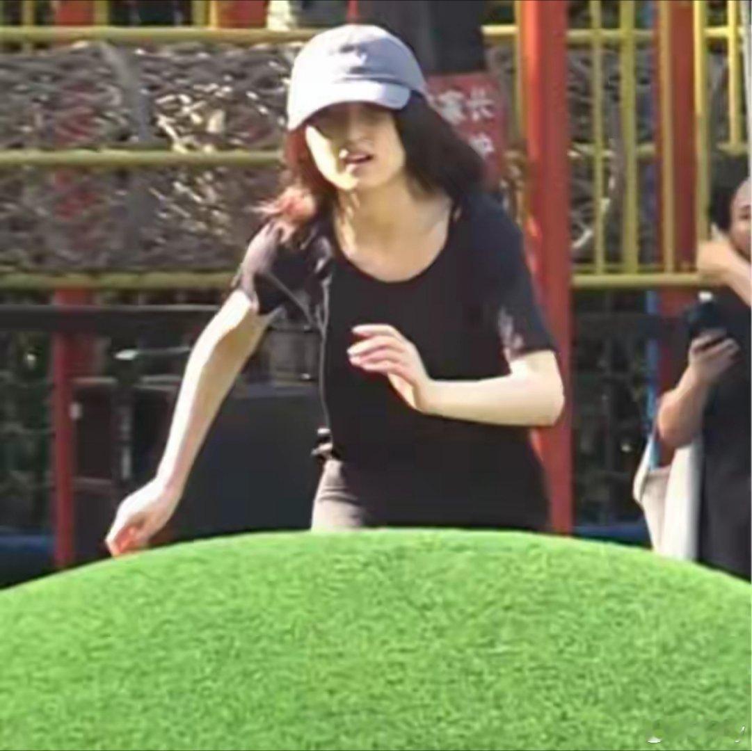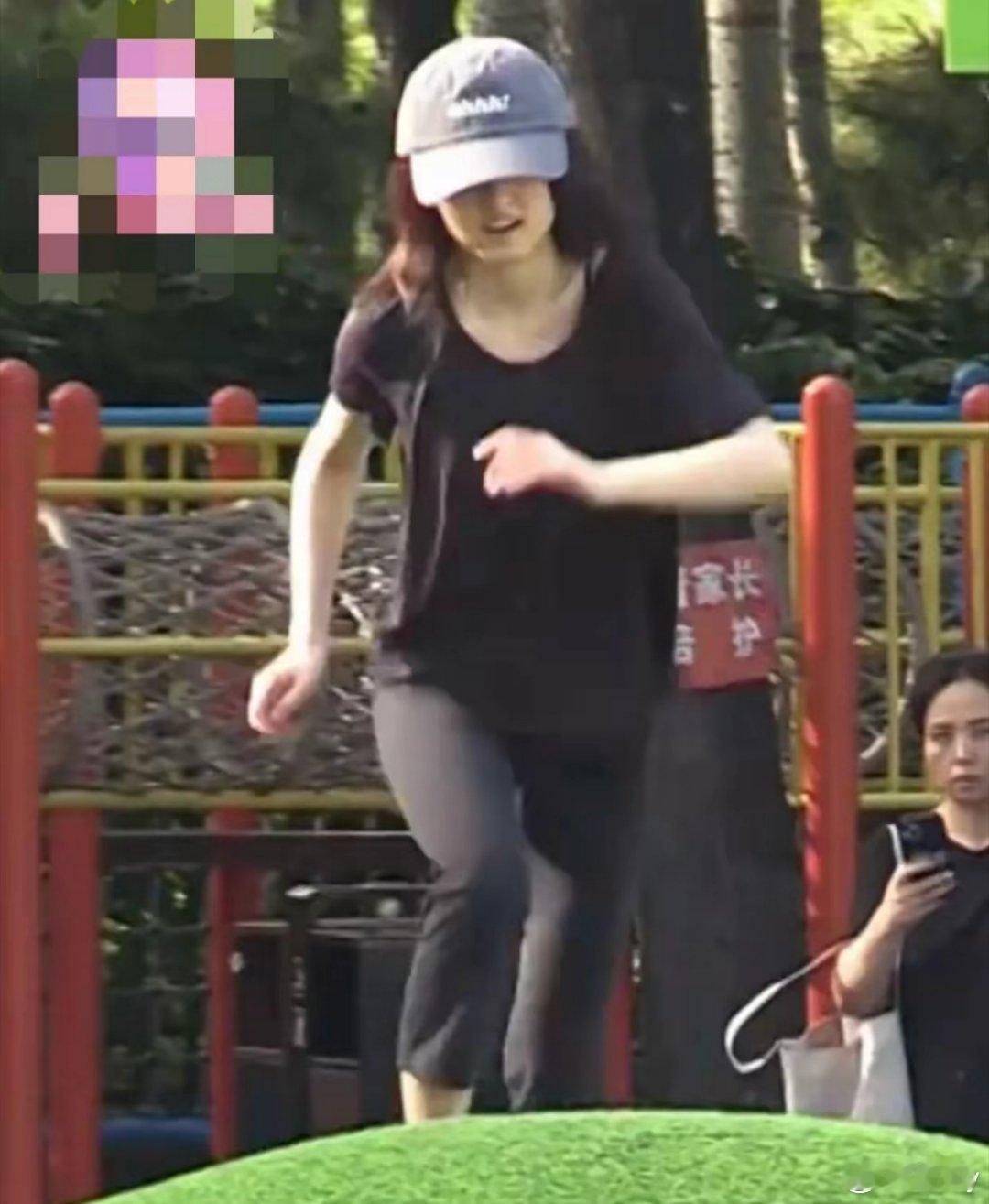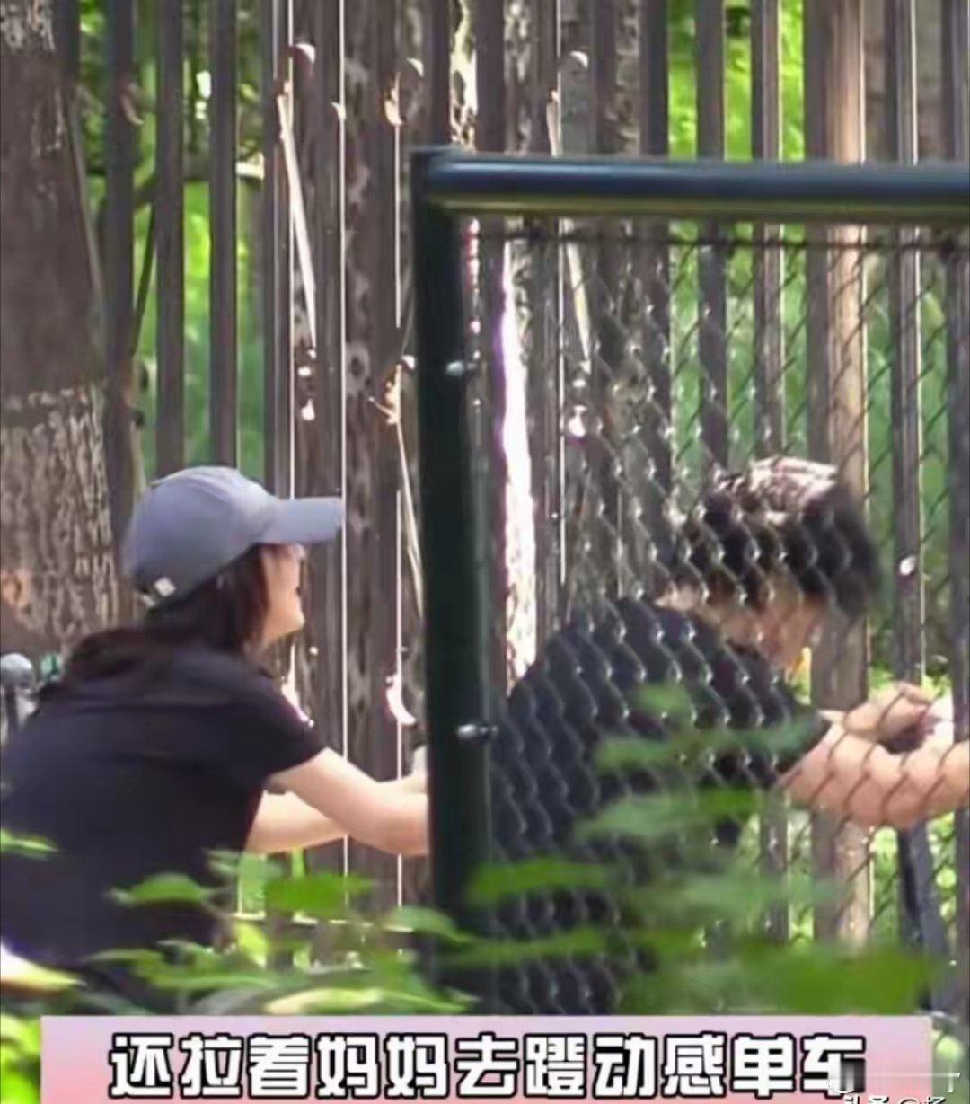 张子枫和妈妈逛公园被偶遇,玩爬网玩爬墙骑动感单车,精力好旺盛