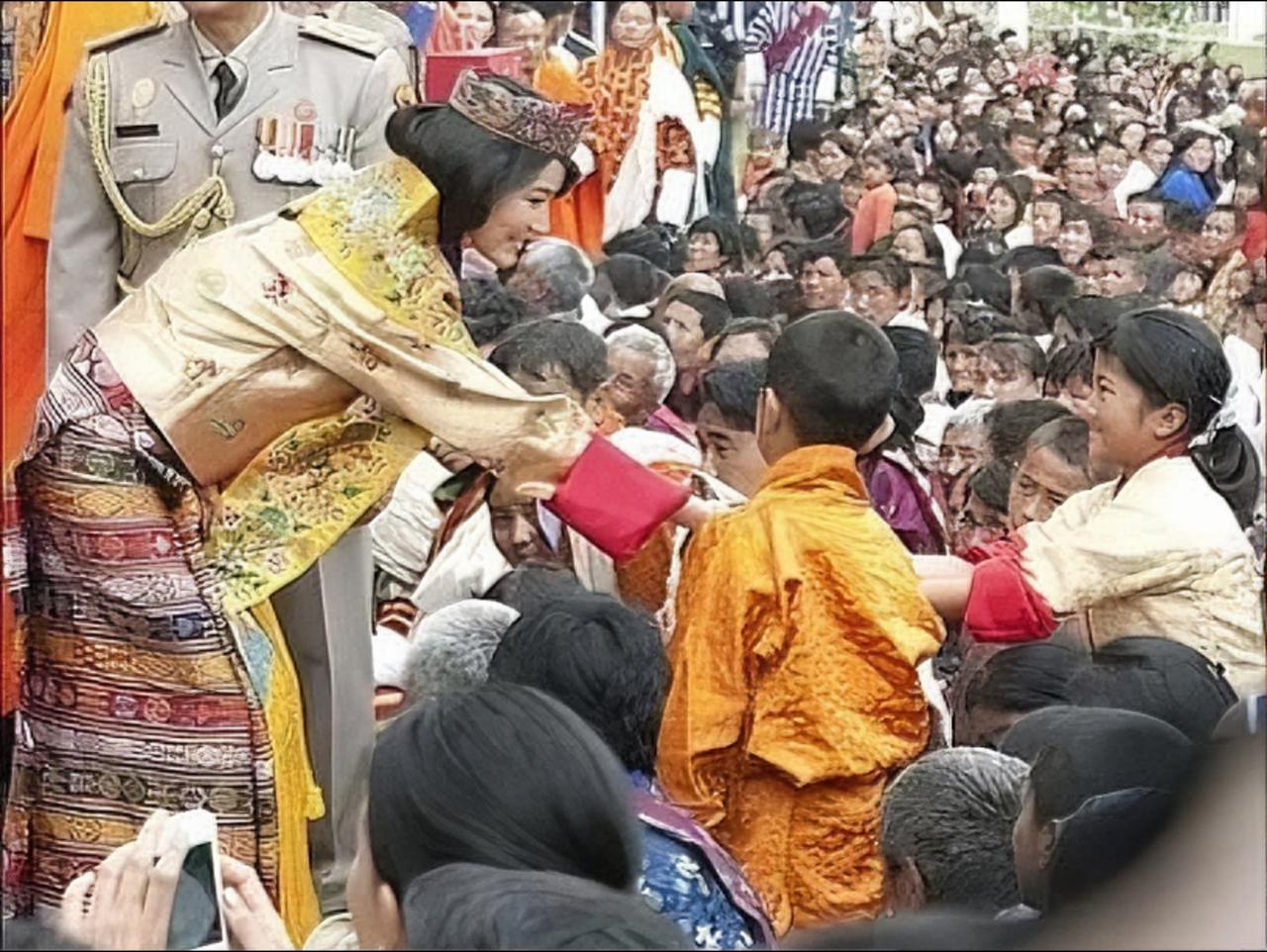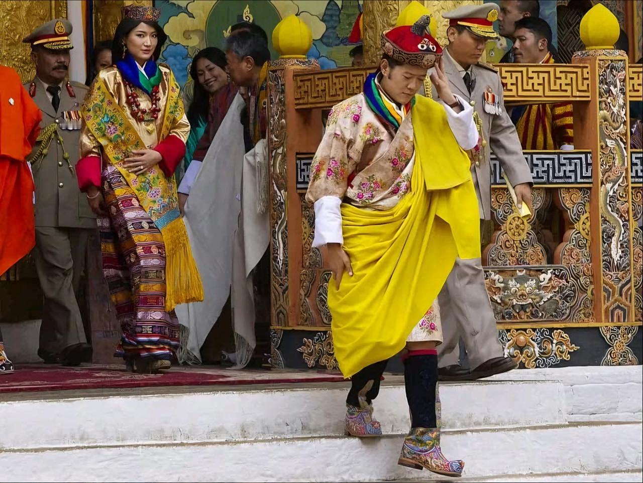 不丹帝后结婚14周年,佩玛21岁就当了王后 佩玛王后大婚时,身着传统服饰、头戴王
