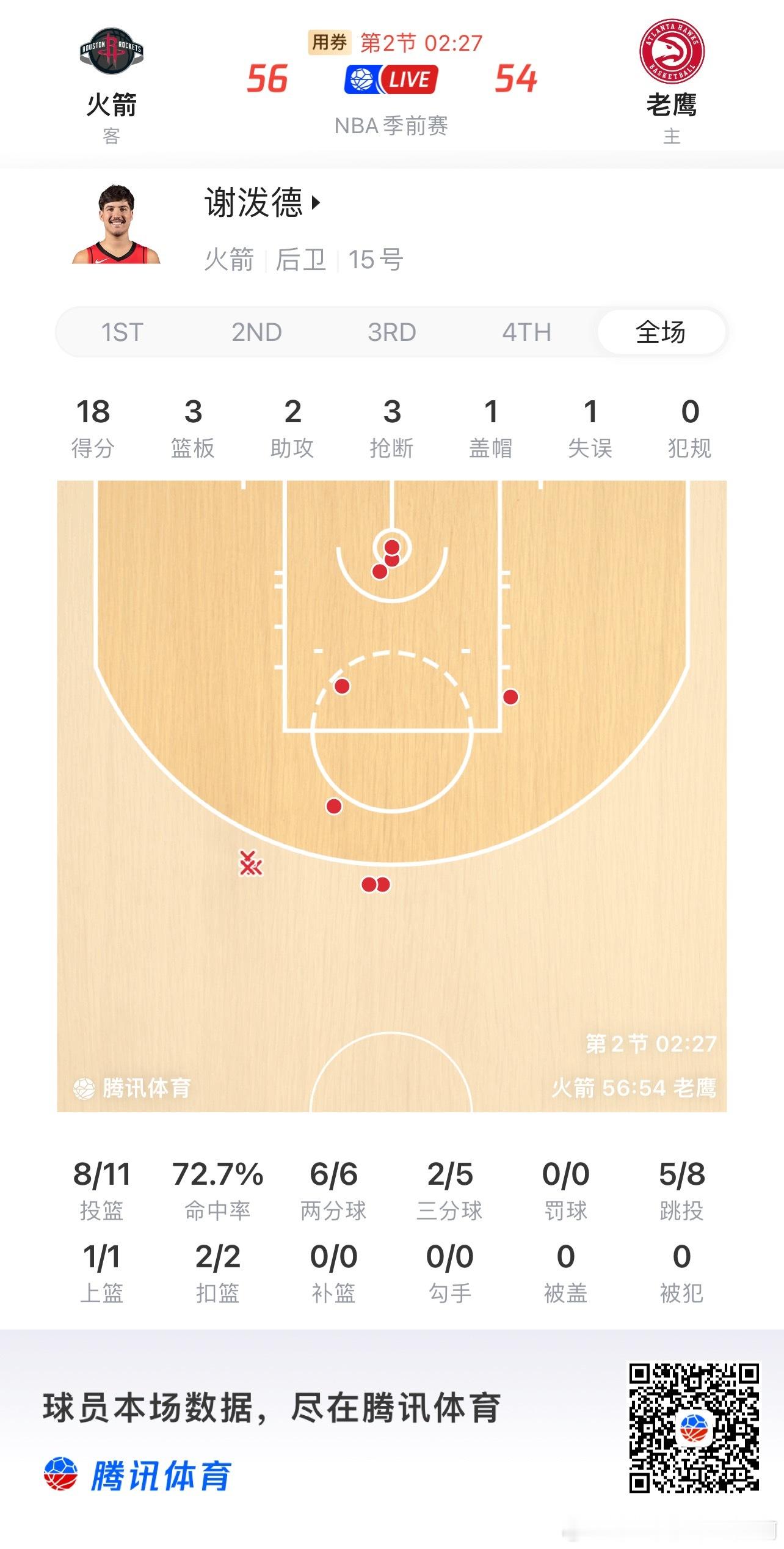 全场比赛结束!火箭133-115战胜老鹰!-谢泼德29分6板6助4断3帽、奥