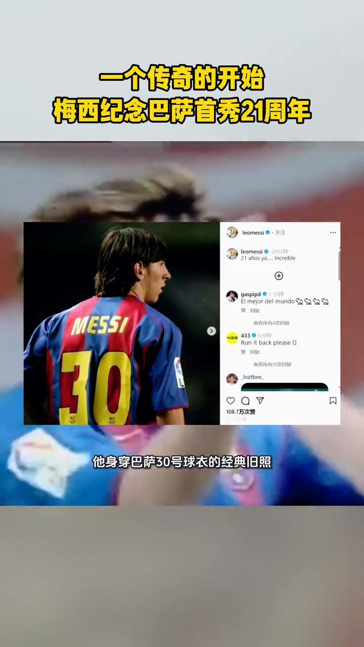 一个传奇的开始:梅西纪念巴萨首秀21周年。 梅西更新了个人社媒,纪念在巴萨一线队