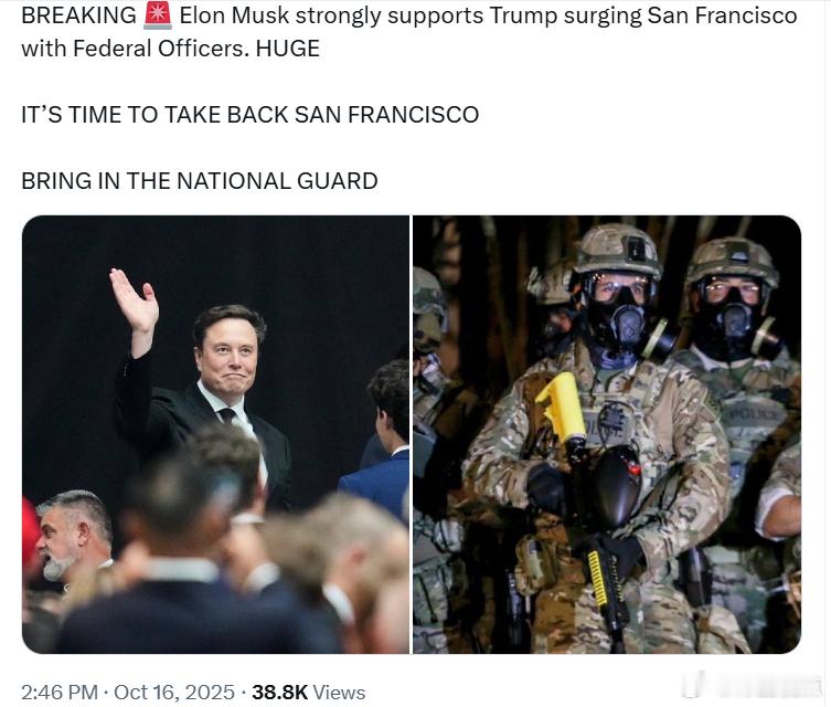 埃隆·马斯克强烈枝持特朗普向旧金山大规模增派联邦执法人员。