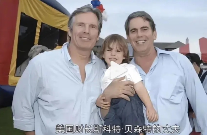 经了解才知道,贝森特是美国历史上首位公开同性恋身份的财政部长,人家在2011就与同性伴侣正式结婚,他的老公叫约翰·弗里曼是前纽约市检察官,两人通过代孕方式育有两个孩,儿子科尔和女儿卡罗琳。