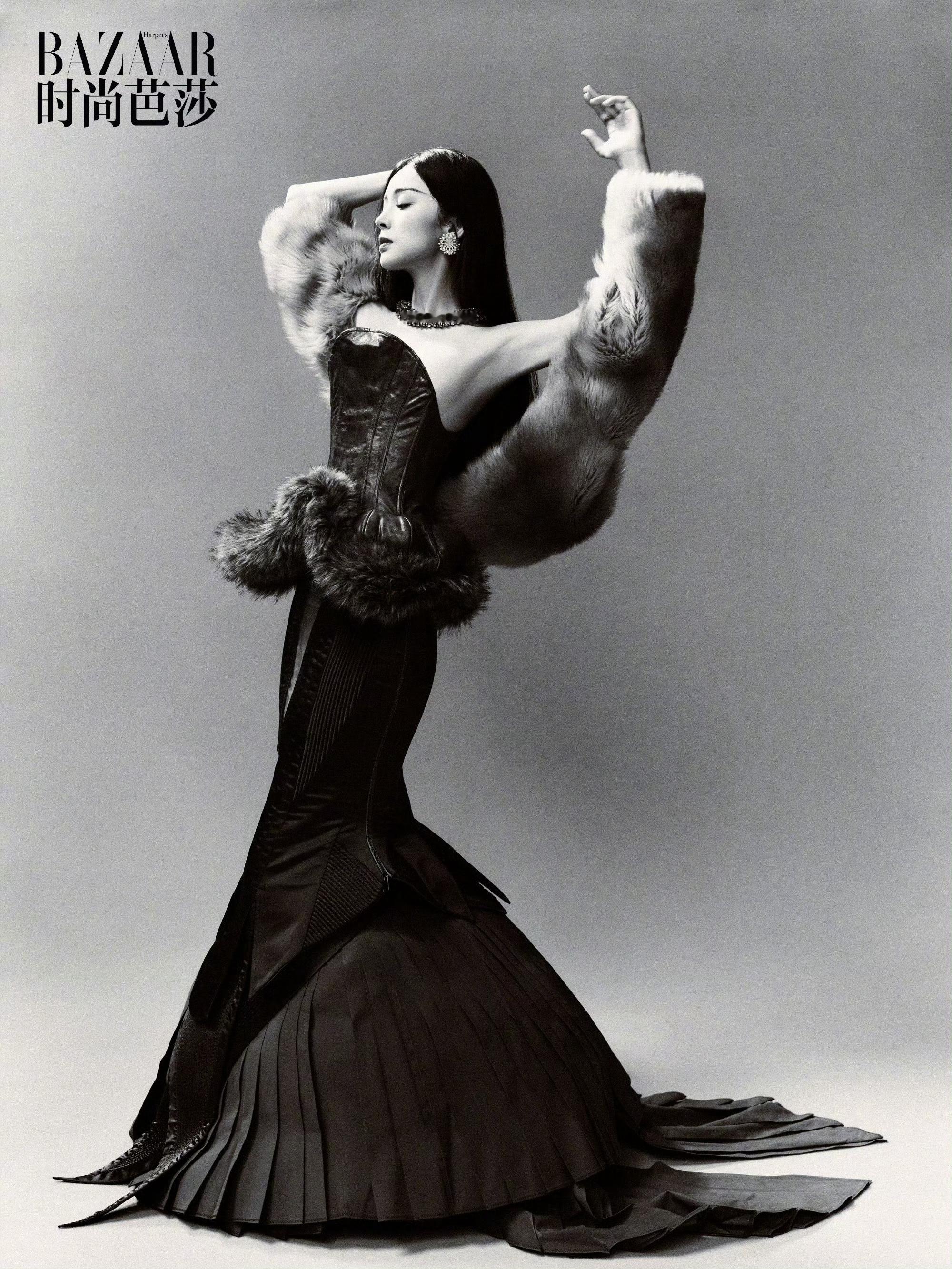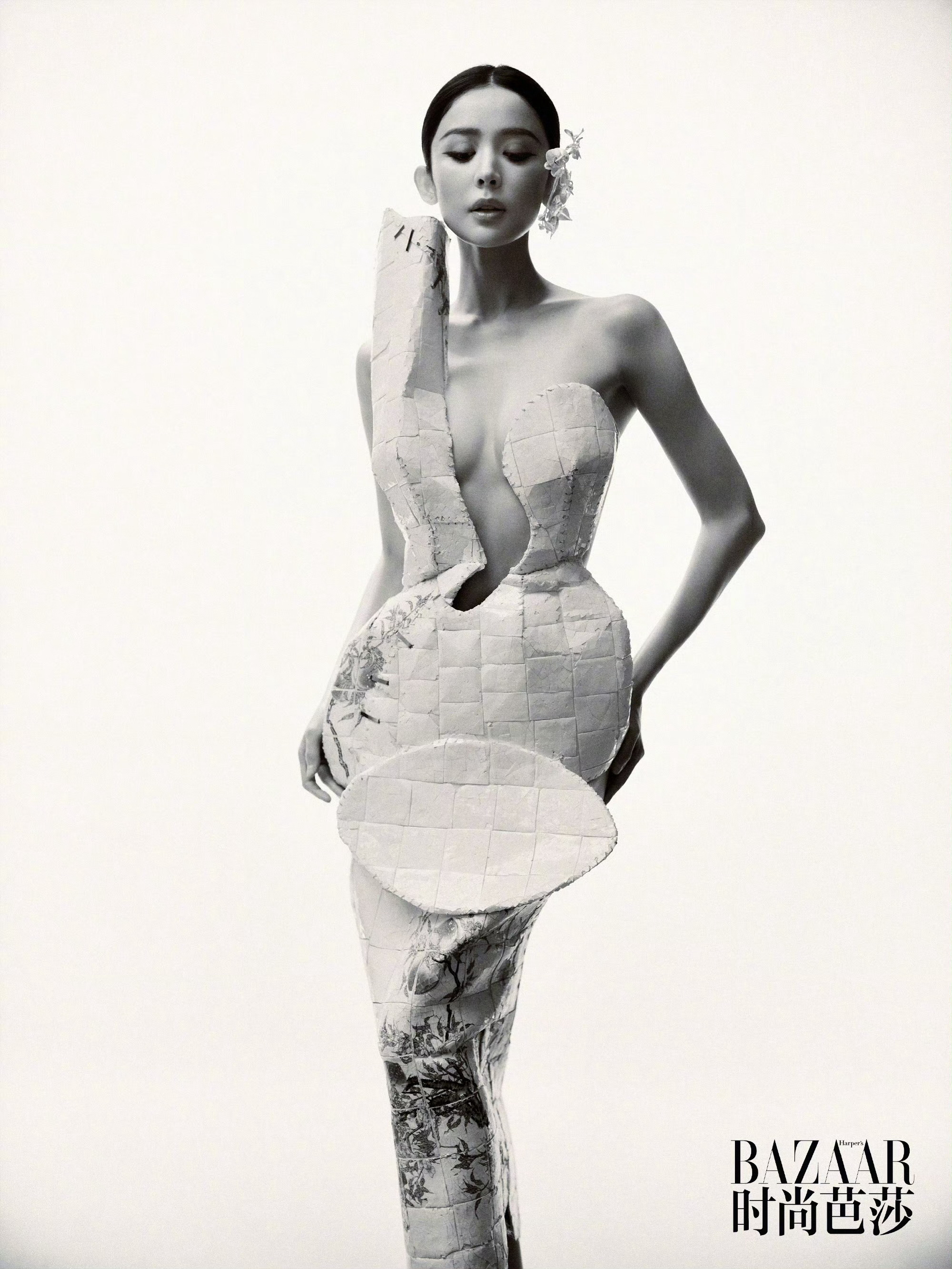 娜扎的时尚芭莎十一月刊封面时而身着粉色公主裙,头戴精致发冠,像从童话世界走出的公主,甜美可爱;时而换上黑色皮夹克搭配破洞牛仔裤,脚蹬马丁靴,酷帅十足,轻松驾驭不同风格,展现出多元的时尚魅力。