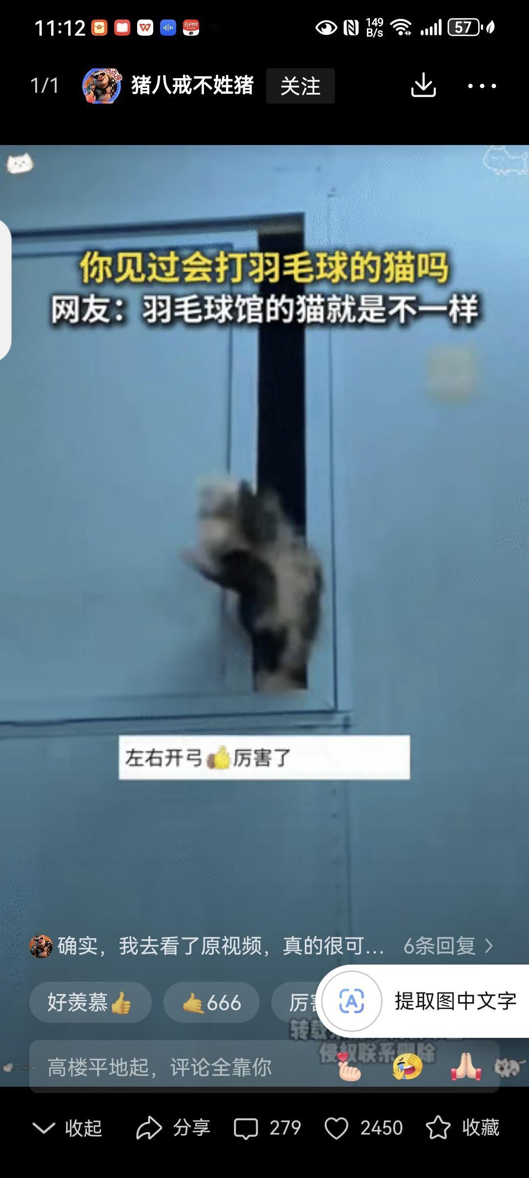 “解释不清了”近日,山东淄博,一羽毛球馆收养了四五只流浪猫,还没养多久就发现其中有一只猫身怀绝技,它趴在窗户上给来球馆的人当“陪练”,不管客人怎么发球,它都能接住,仿佛天生的一样!网友:羽毛球馆的猫就是不一样。 淄博这羽毛球馆收养了四五只流浪猫,唯独这只不一样。它总趴在窗台,盯着场内的球挪不开眼。 有人试着朝它发球,没想到肉垫一挥就精准接住,动作比练过的还利索。 一来二去,这成了球馆特色。不少人专程赶来,就为跟这免费陪练过几招。 工作人员刘先生说,现在大半客人都是冲猫来的,它成了实打实的网红。 网友都乐了,调侃它是“猫咪界的林丹”,羽毛球馆的猫果然自带技能点。 谁能想到,曾被抛弃的小流浪,靠一身“爱好”活出了价值,还把欢乐带给所有人。 这哪是捡了只猫,分明是挖到宝了!