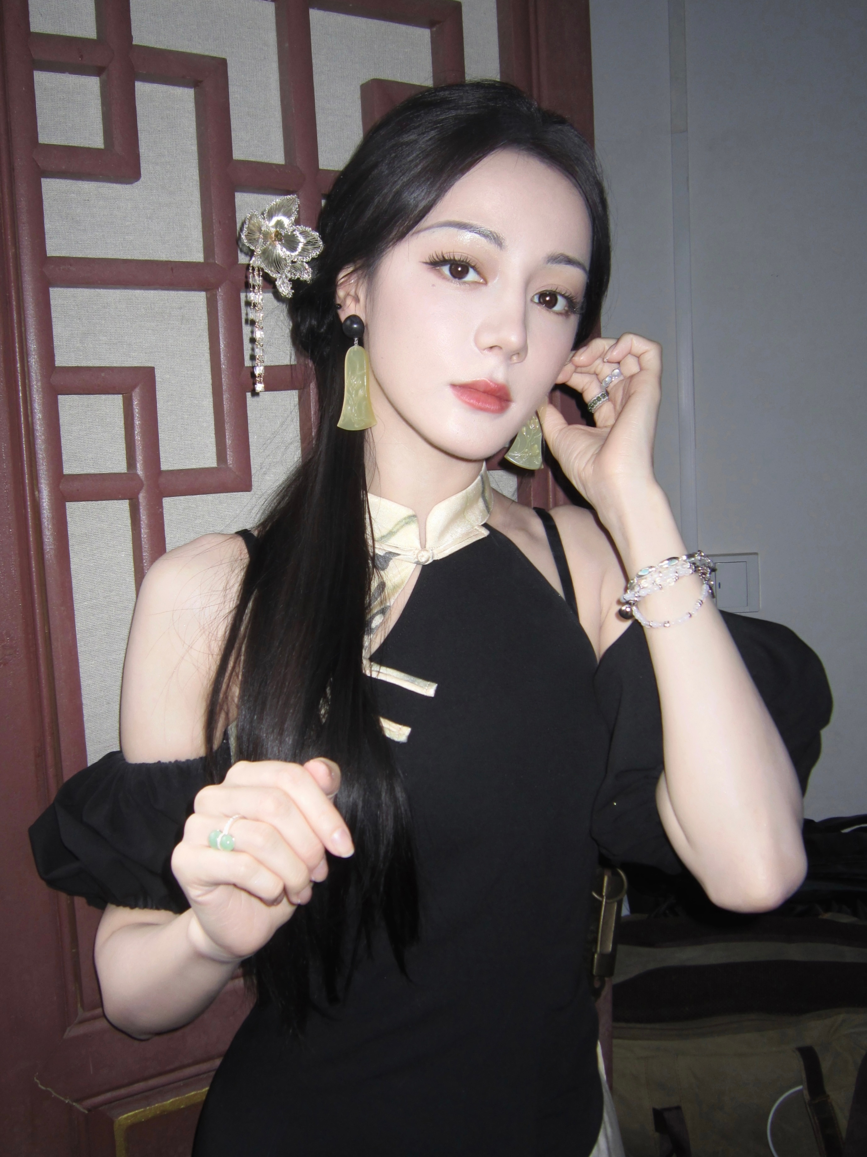 刘亦菲你要注意,背面的镜子给你反光了。