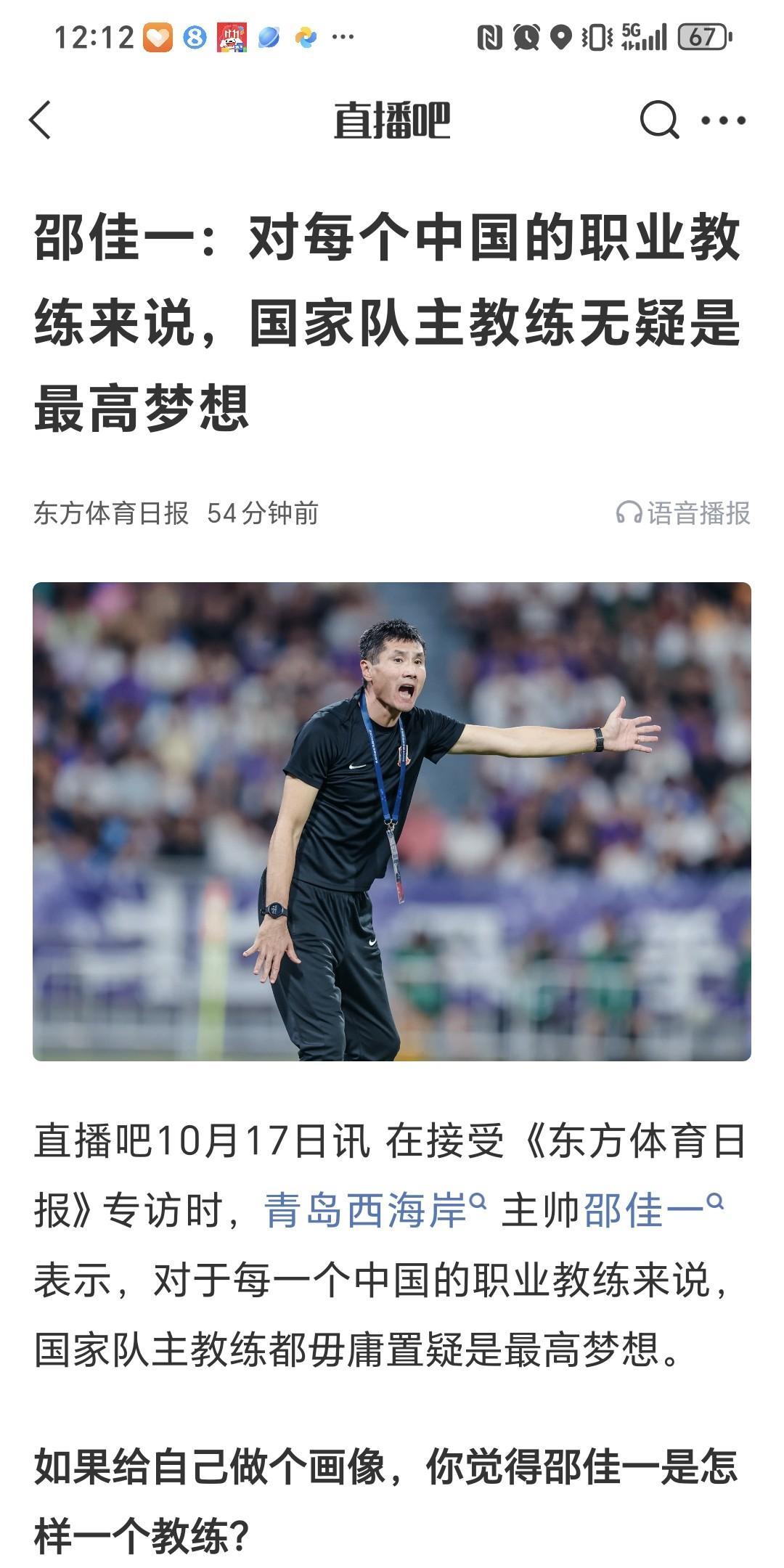 落花有意,流水无情。青岛西海岸主教练邵佳一在接受东方体育日报采访时,表达了执教中国国家队的愿望。可惜中国足协没有考虑由本土教练担任中国国家队主教练,极大概率是来自欧洲的教练,最大的热门候选人是来自波兰的米赫涅维奇。 其实,邵佳一是中国国家队主教练的合适人选,理由如下:第一,他曾经在德国留洋,熟悉欧洲先进技战术;第二,他在国家队当过中方教练组教练,熟悉国家队的运作模式;第三,他在青岛西海岸执教成绩不错,有以弱胜强的案例。第四,邵佳一至少是知根知底,比米赫涅维奇强,重点是工资肯定低。 日本国家队国产主教练森保一带队7年,日本队成绩稳步提升,为什么中国足协不能学习日本足协,给邵佳一七八年时间,让他长期带国家队,或许有奇效。 那么问题来了,中国足协为什么不待见国产教练?邵佳一适合中国国家队主教练位置吗?#中国足球#