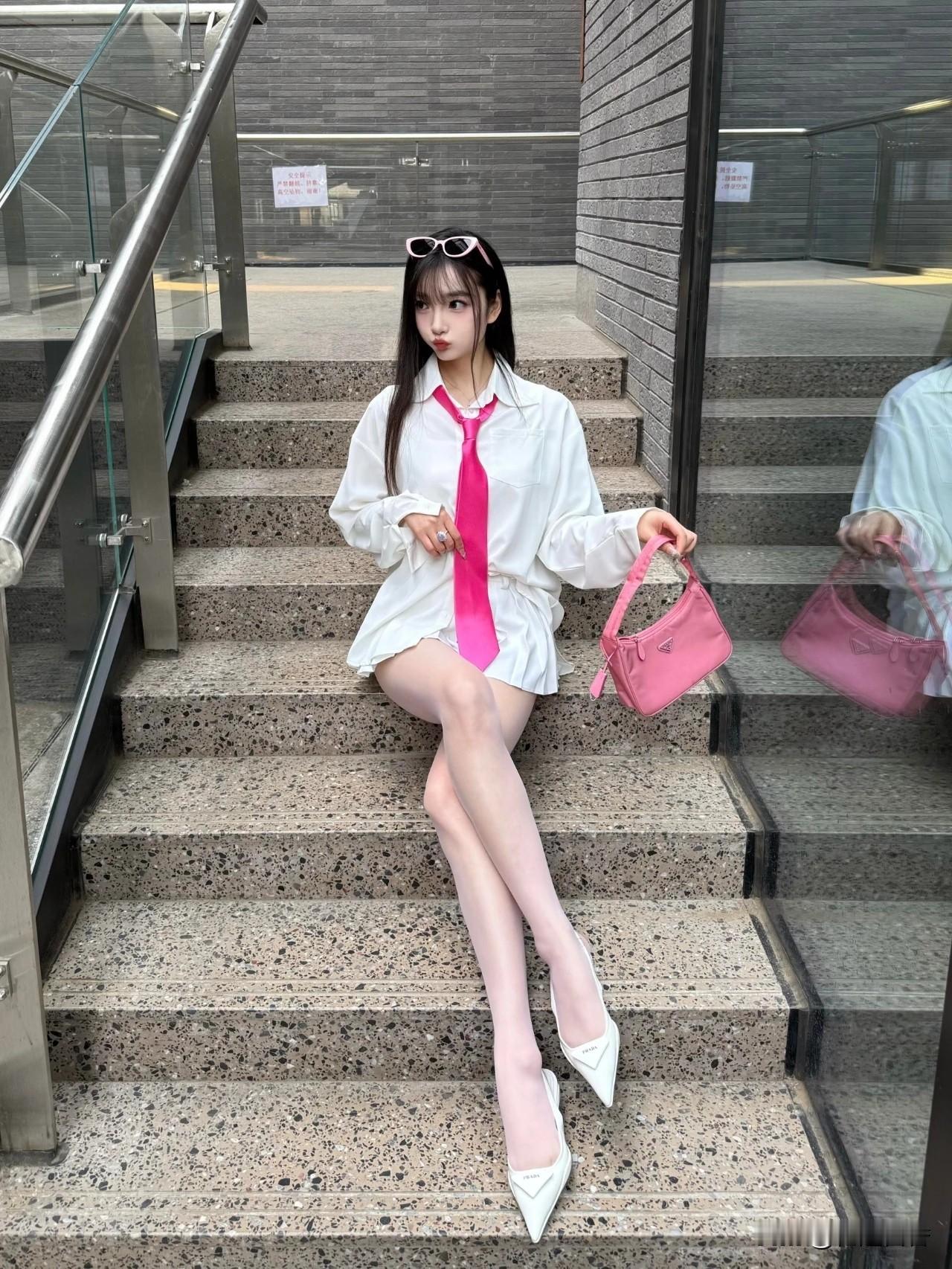 白衬衣搭配白短裙又亮眼又彰显女王气质!