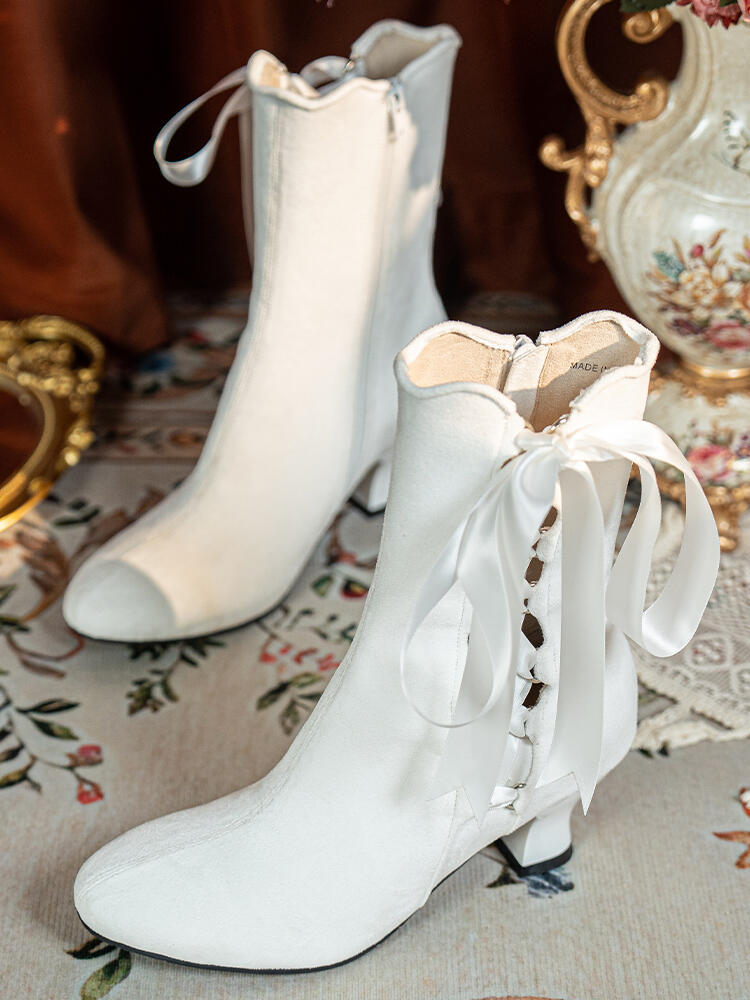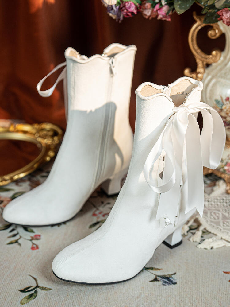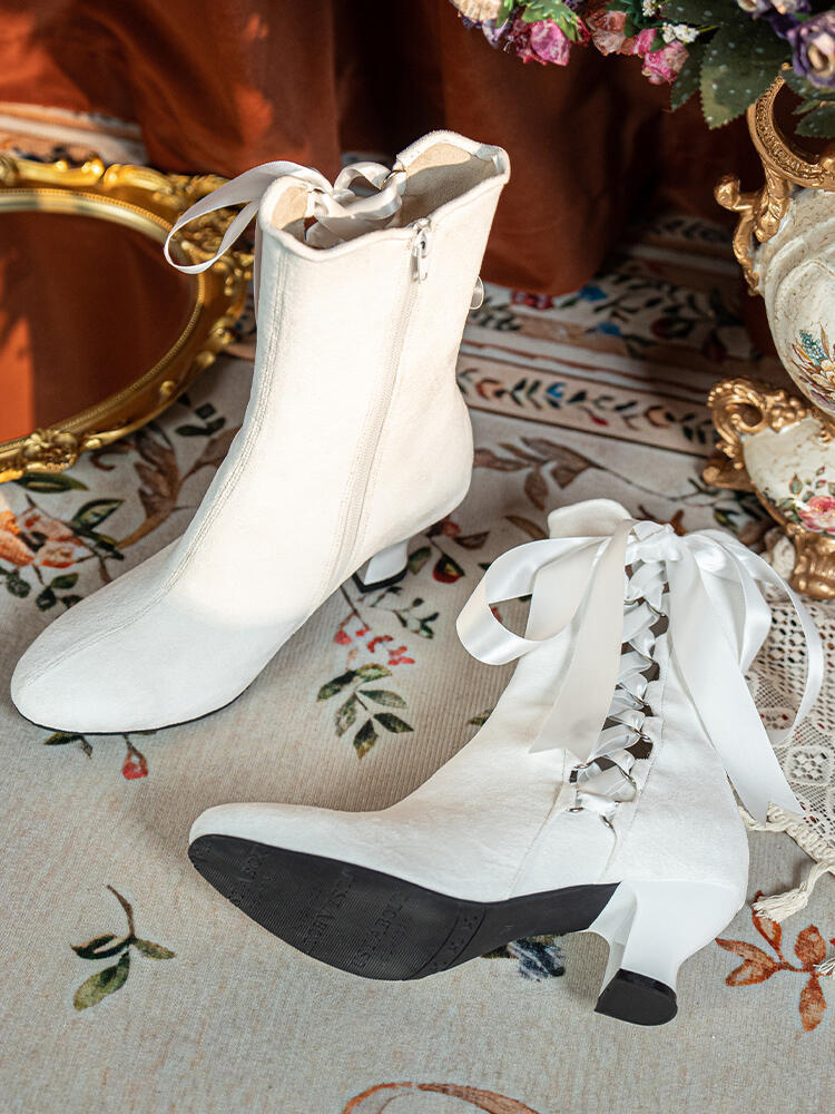 这双维多利亚白色短靴太戳少女心了啊,绒面材质看上去温柔软糯,缎带交叉绑带+蝴蝶结的设计,把甜美元素拉满,鞋口波浪边显得很精致,穿上就是温柔又甜美的小公主,不管是日常出街还是约会穿都很亮眼。