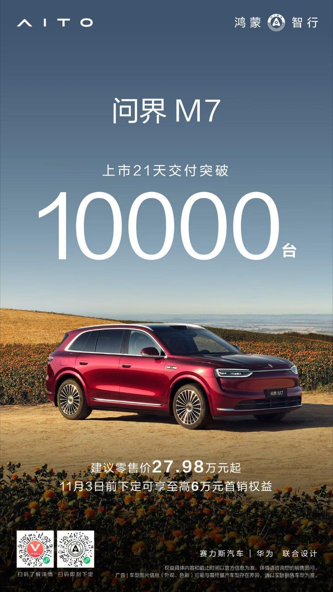 发布即交付,交付即海量,21天问界M7交付破10000台[doge]问界m7 ​​​