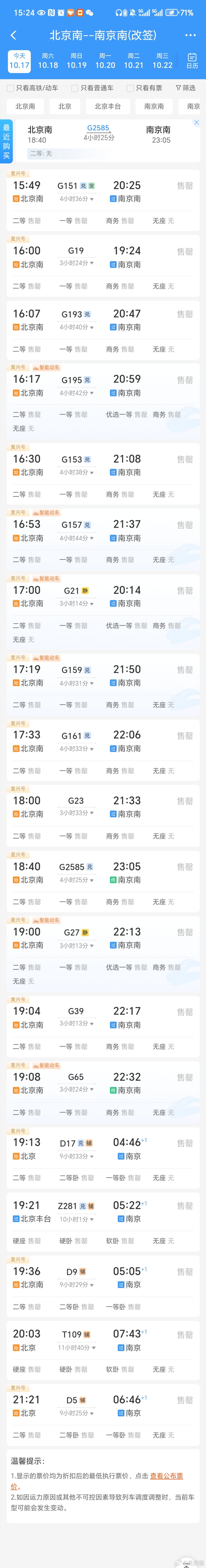 北京到南京的高铁票是真的紧俏,还好我提前买了票,不然晚了,今天就赶不回去了[do
